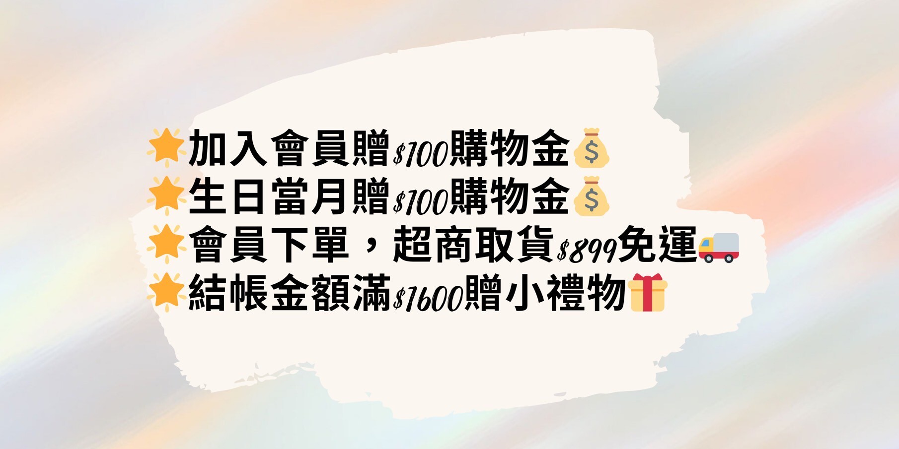 🌟加入會員 & 生日當月 贈$100購物金💰