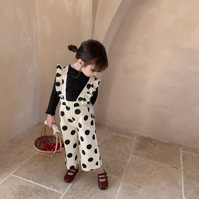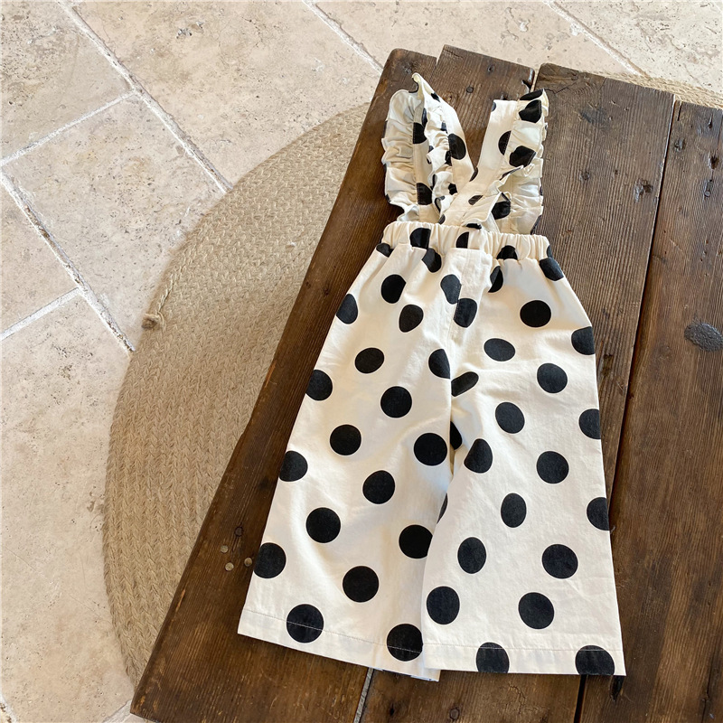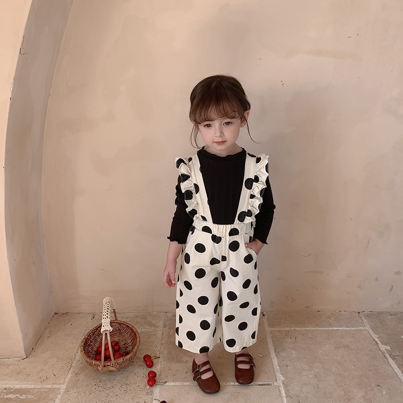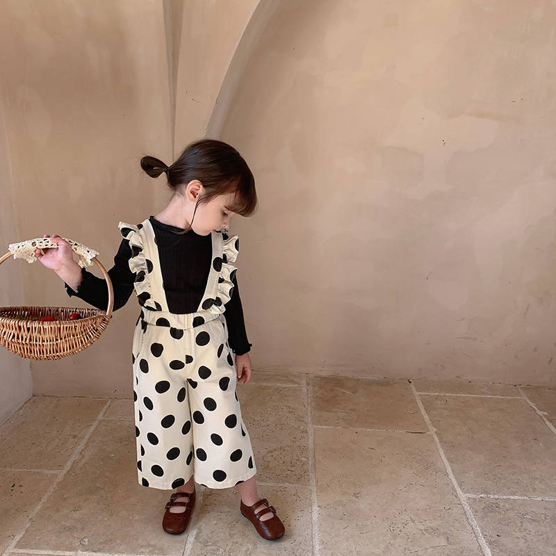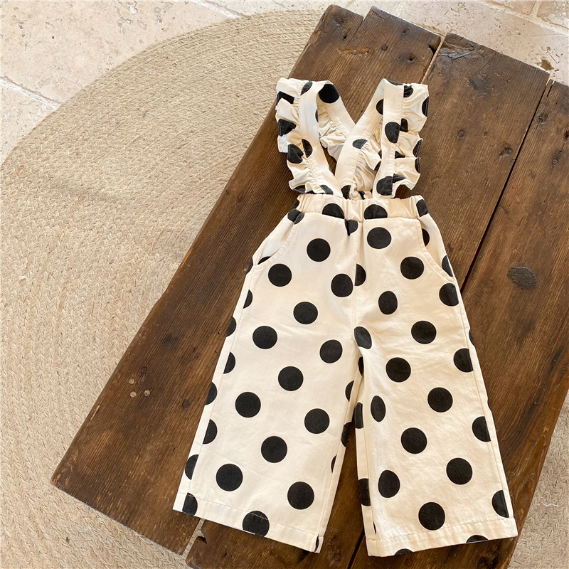 復古大圓點九分背帶褲