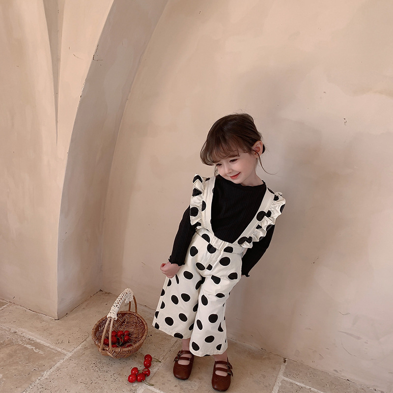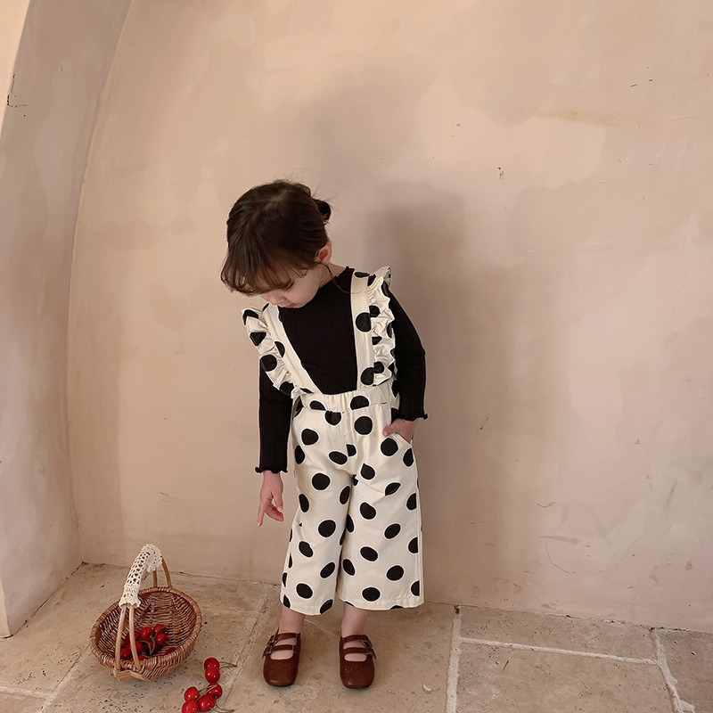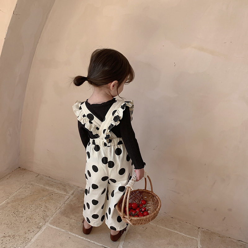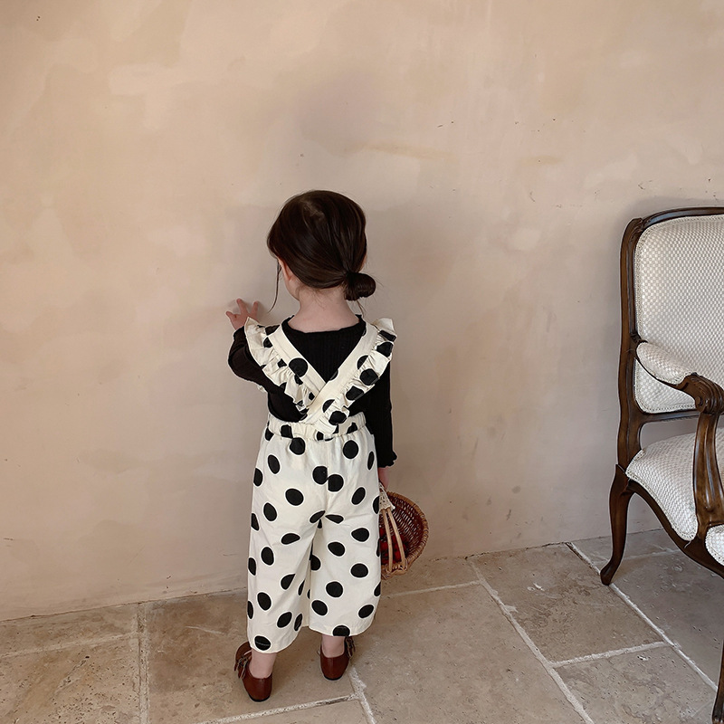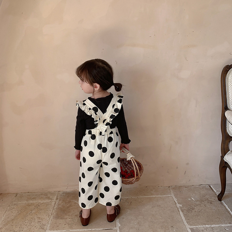 復古大圓點九分背帶褲