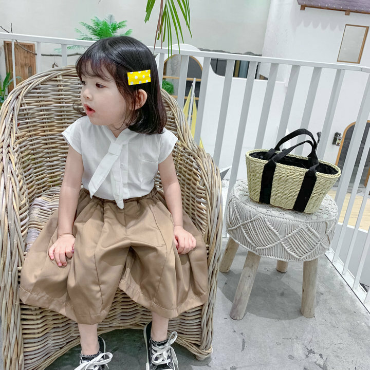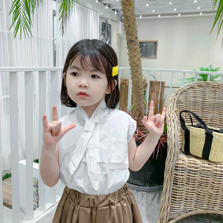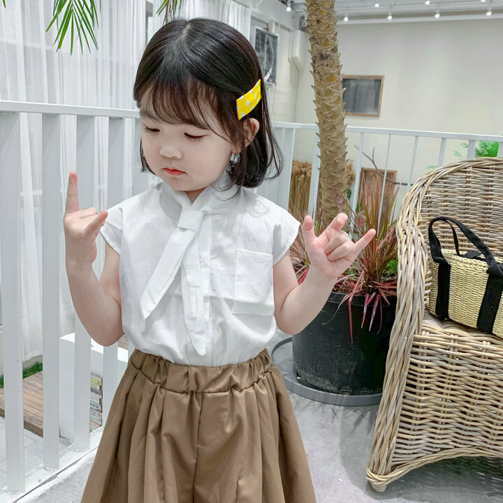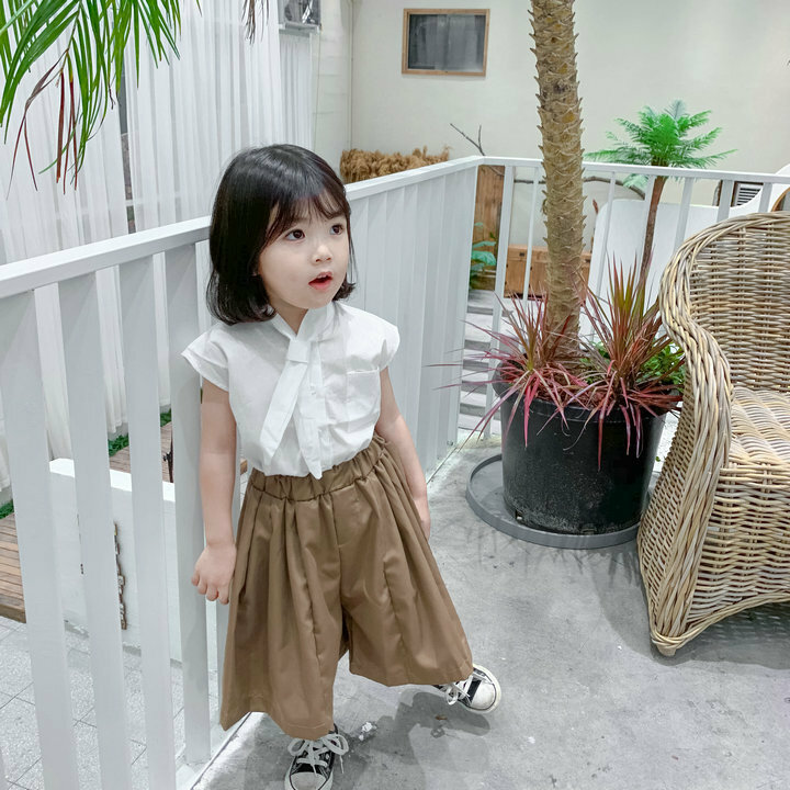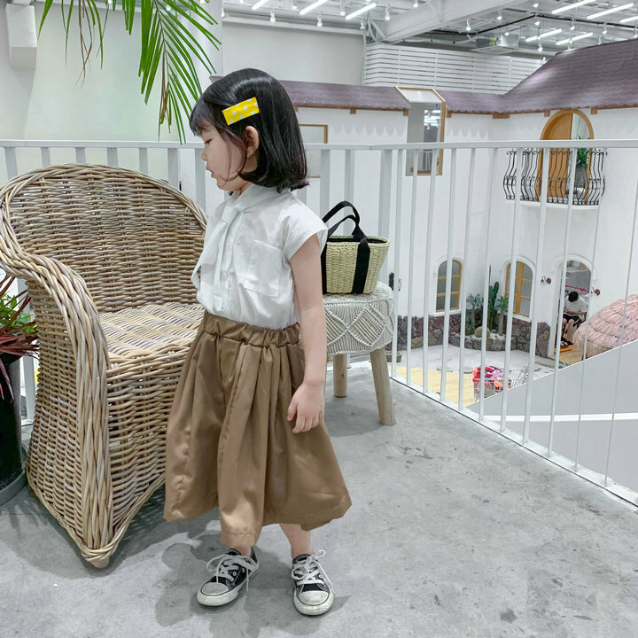 <兩件組>OL風領結襯衫+寬褲裙 白色