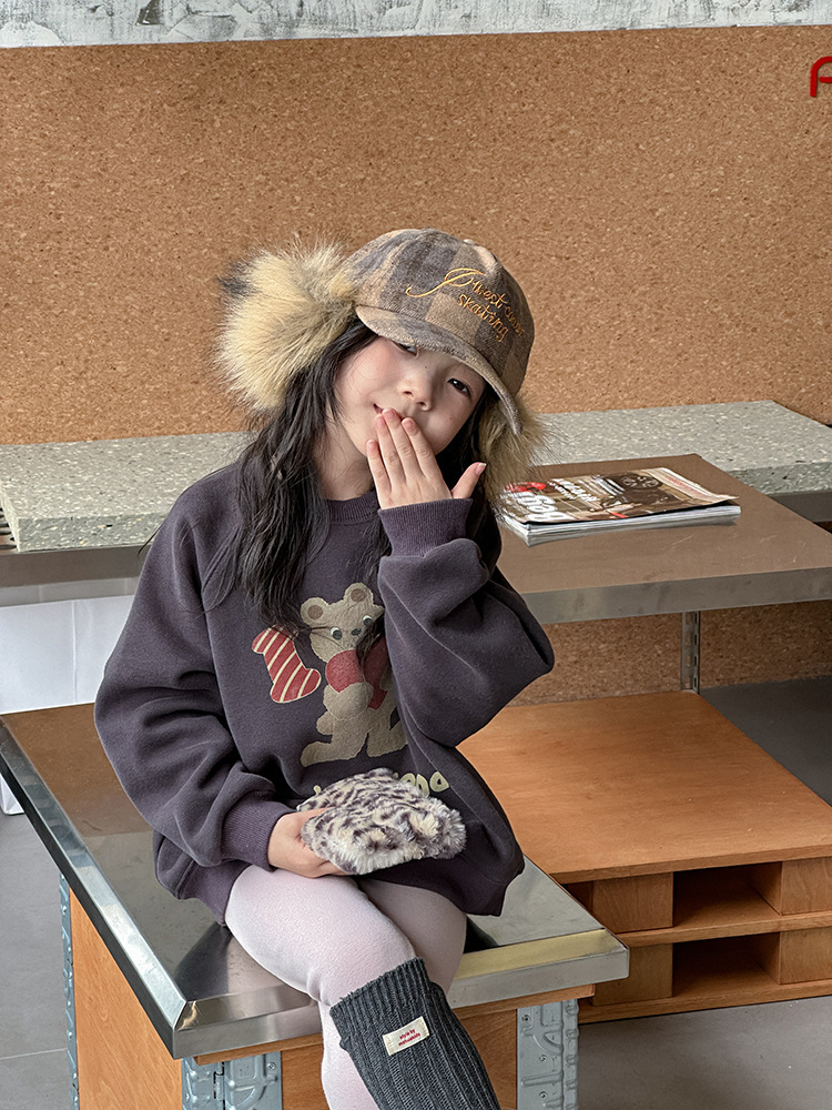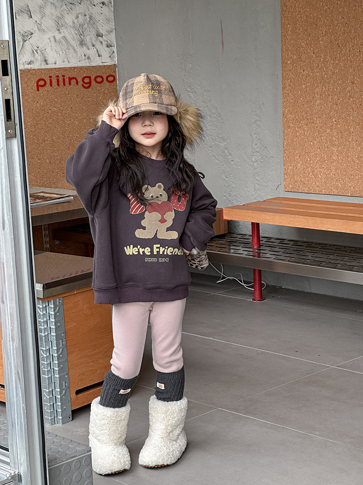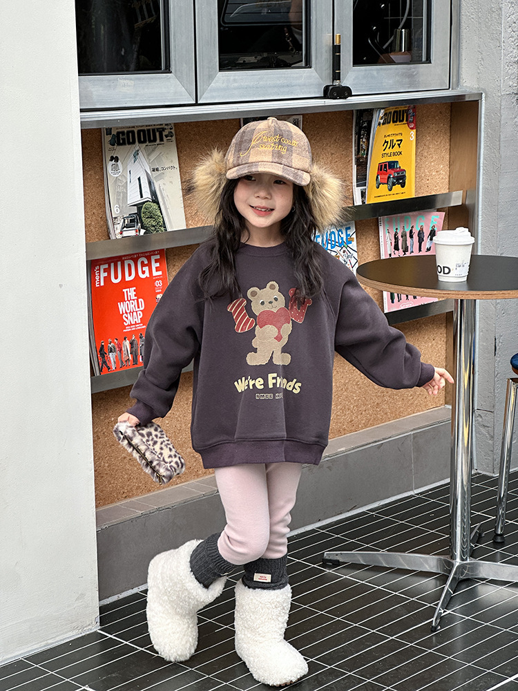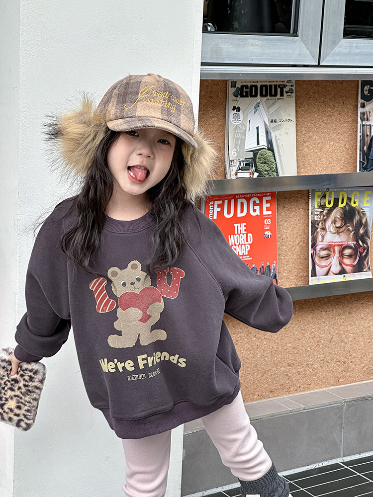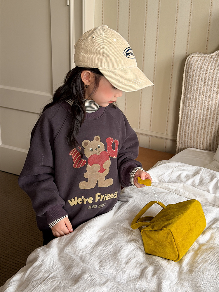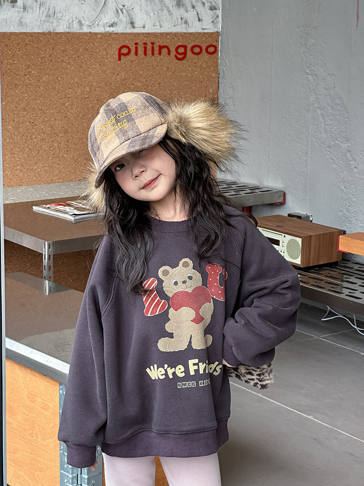 【加絨款】深灰愛心熊 女孩款大學T 90-170cm