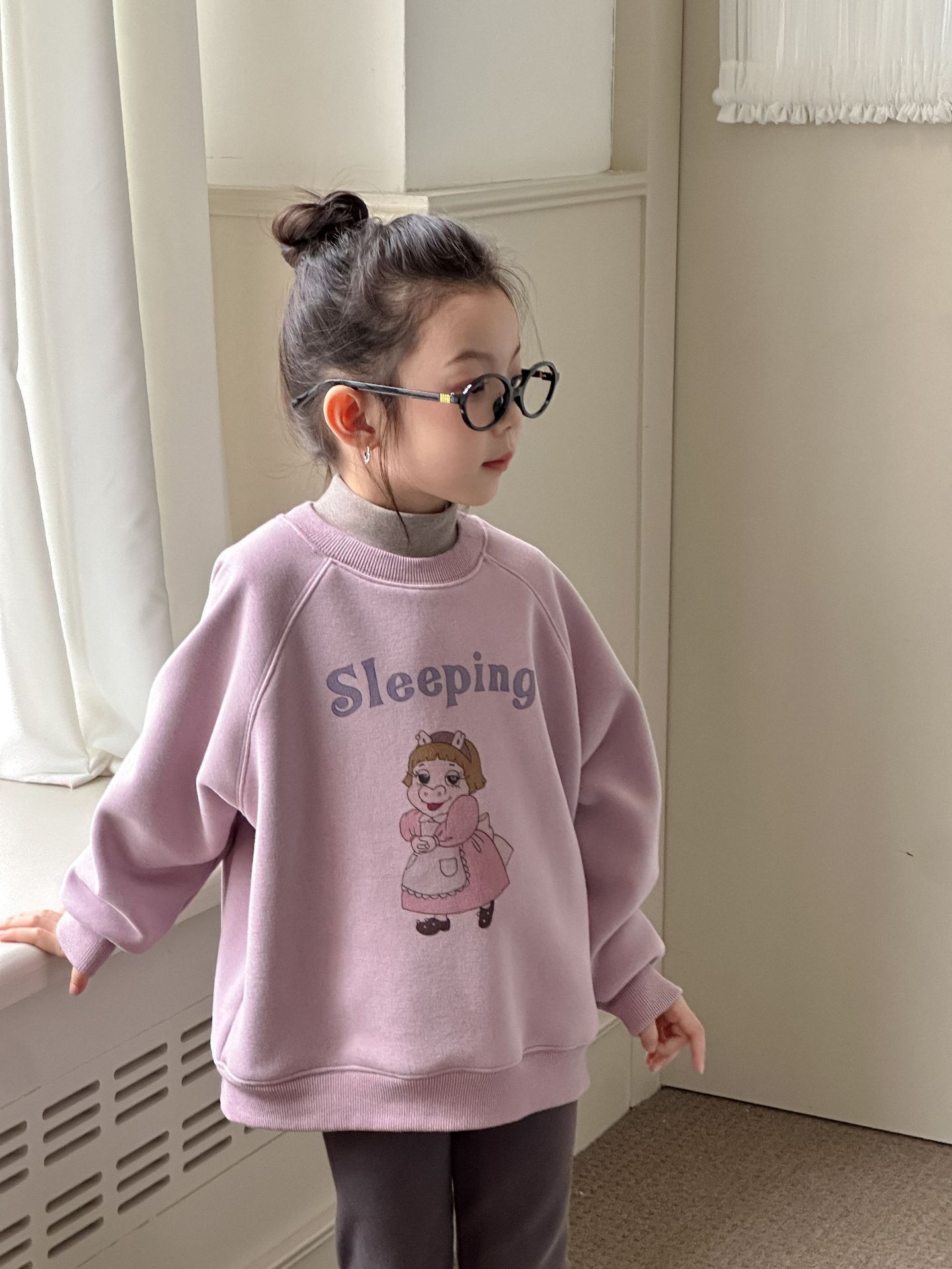 【加絨款】紫色小豬 女孩款大學T 90-170cm