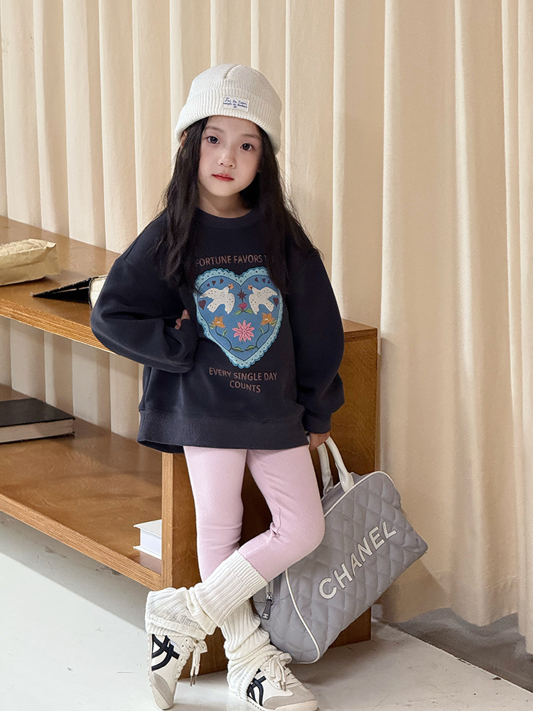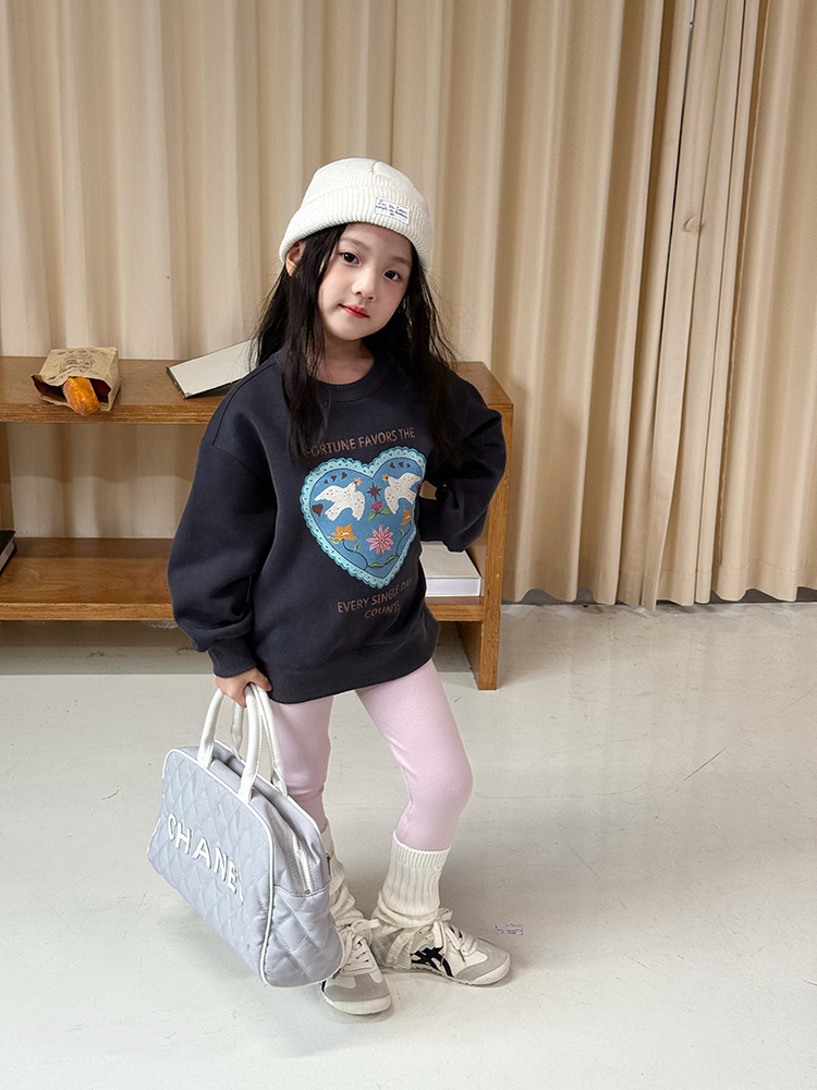 深灰愛心 女孩款大學T 9款 90-170cm