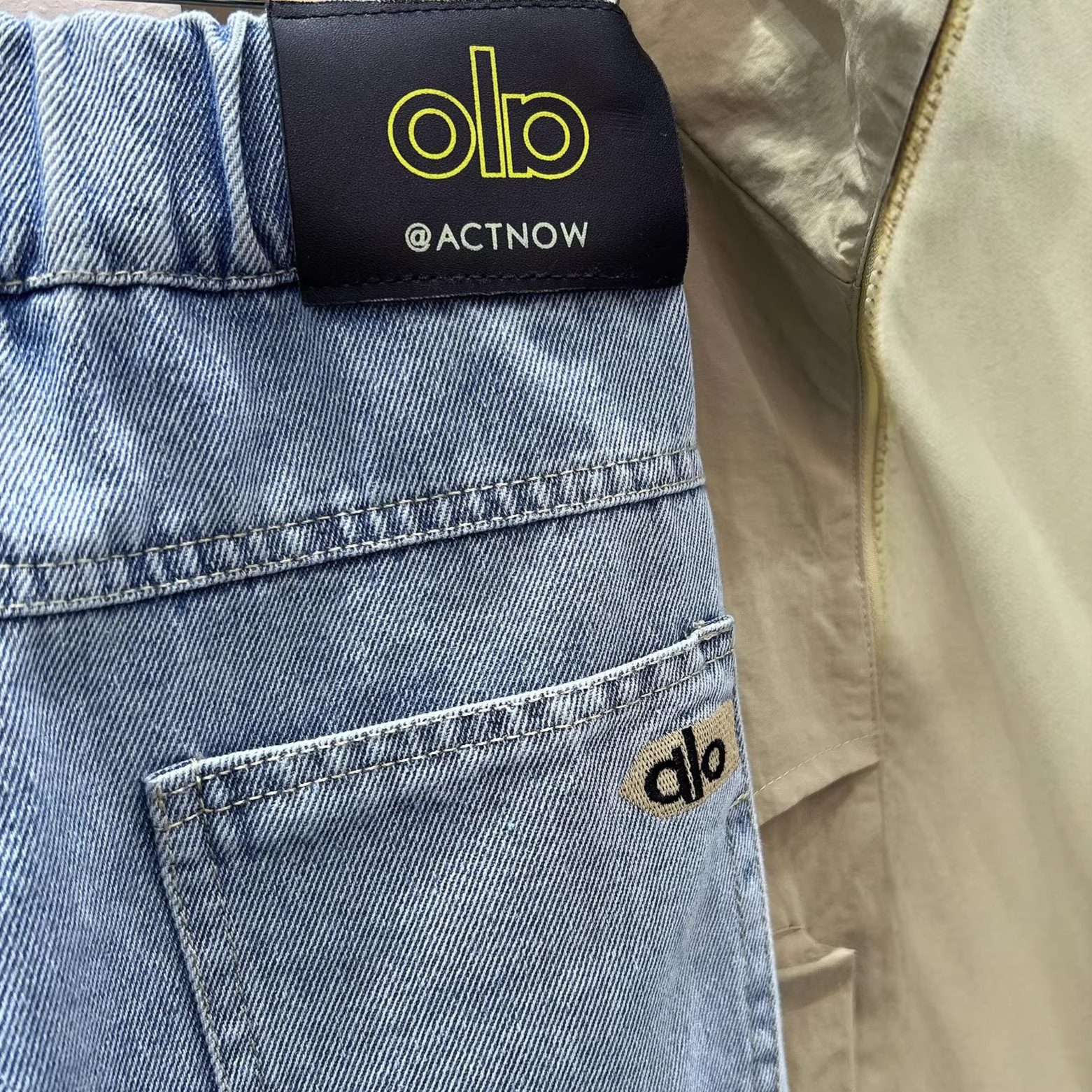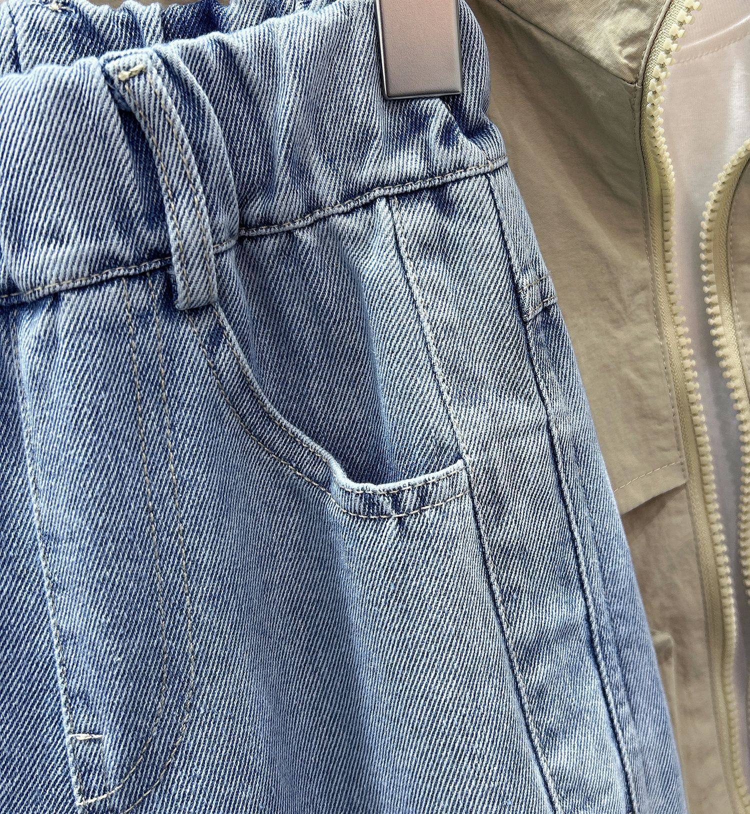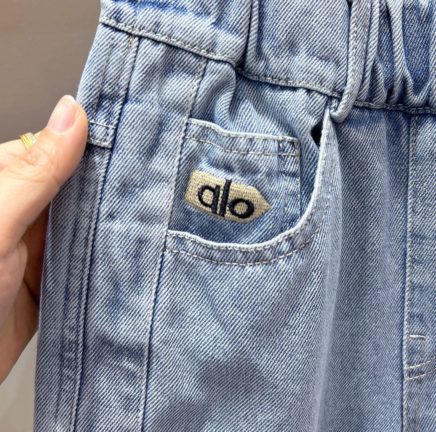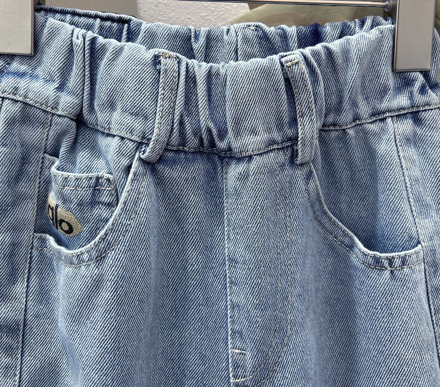 字母皮布標淺色牛仔褲 100-150cm #NZK2026011801