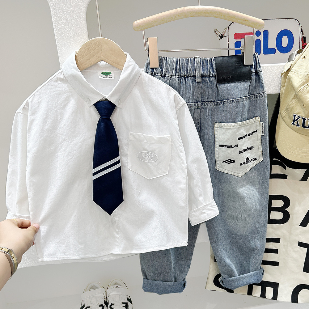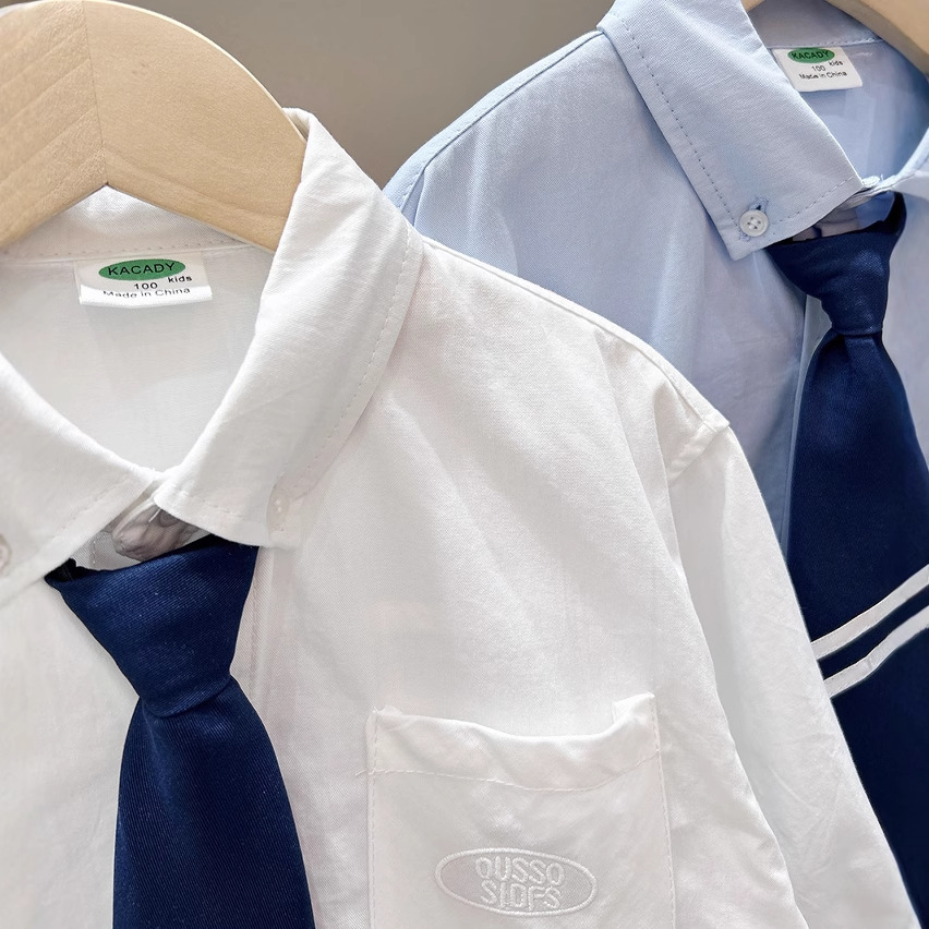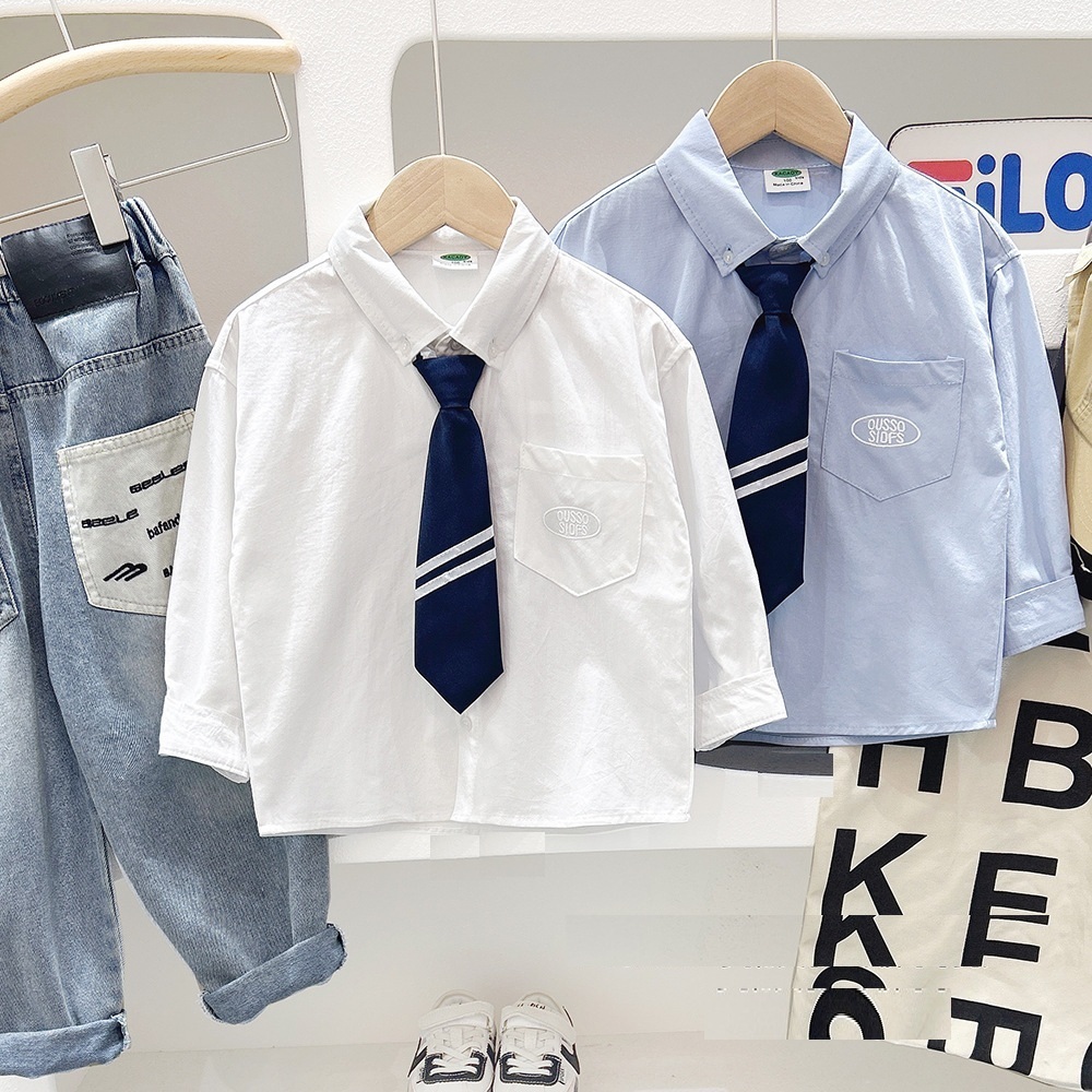 鬆緊可拆領帶休閒式襯衫 2色 100-150cm #CS2025060801