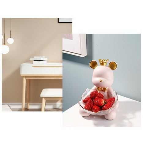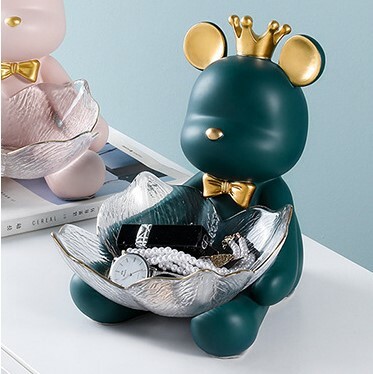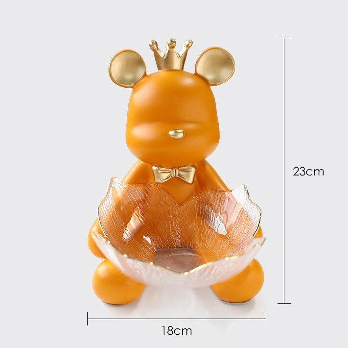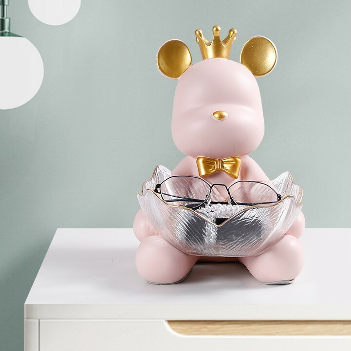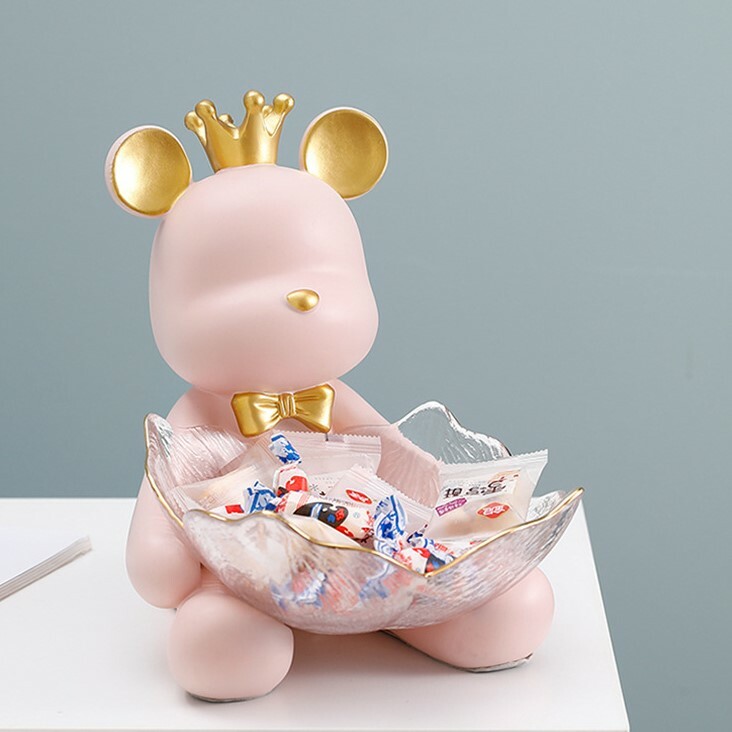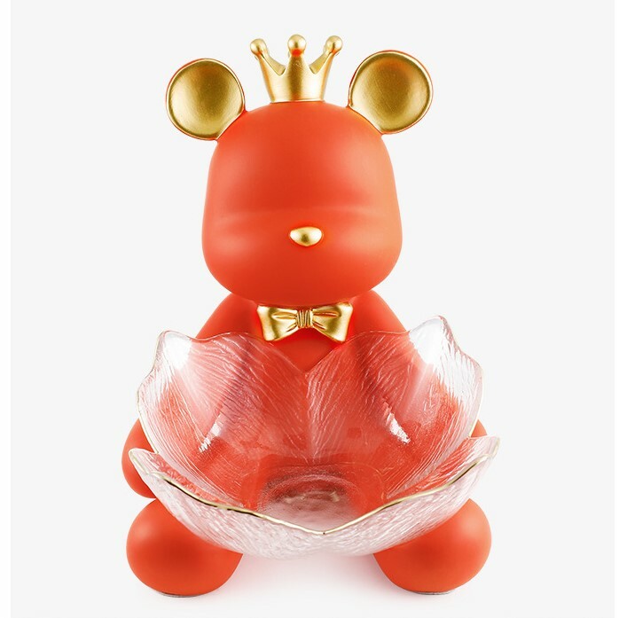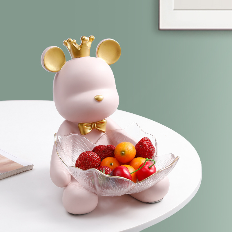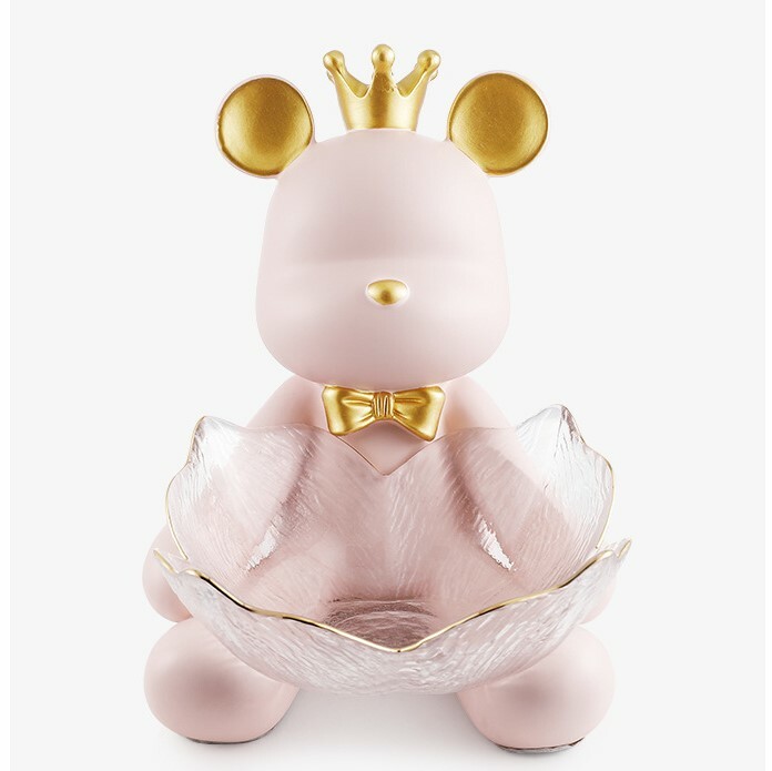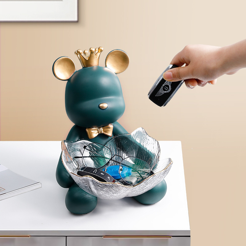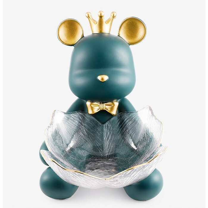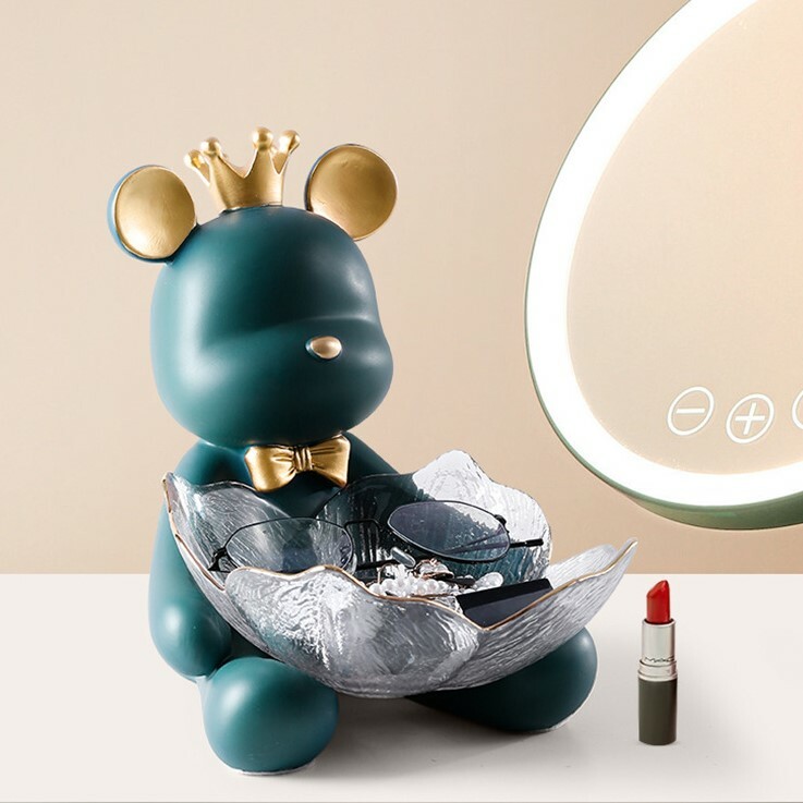 北歐輕奢風居家擺飾-皇冠暴力熊玻璃托盤4色