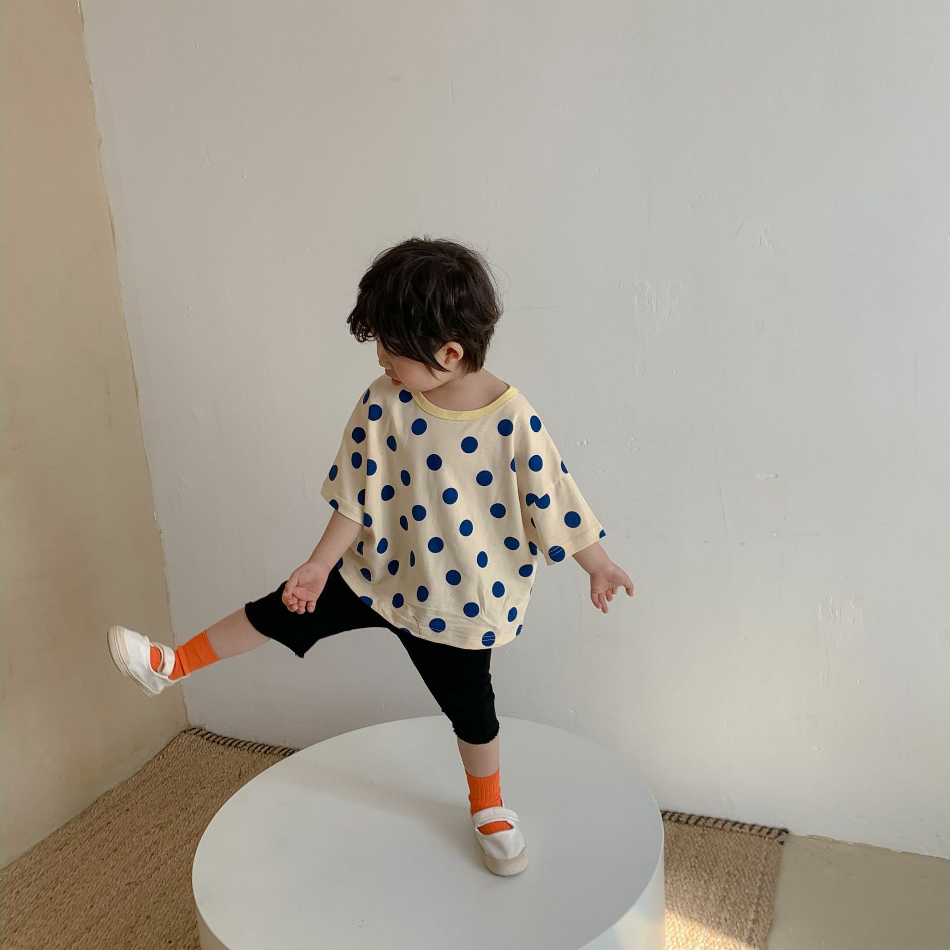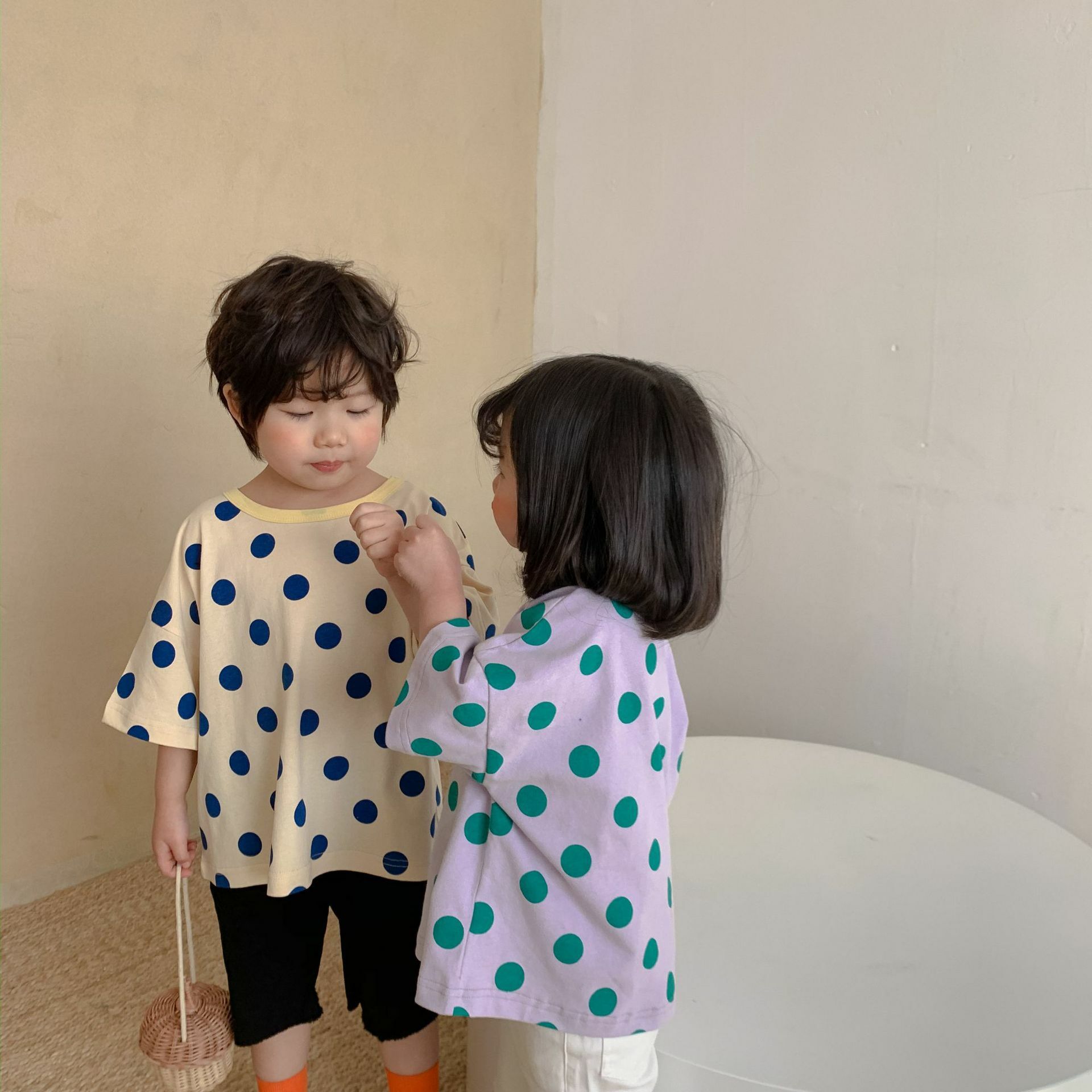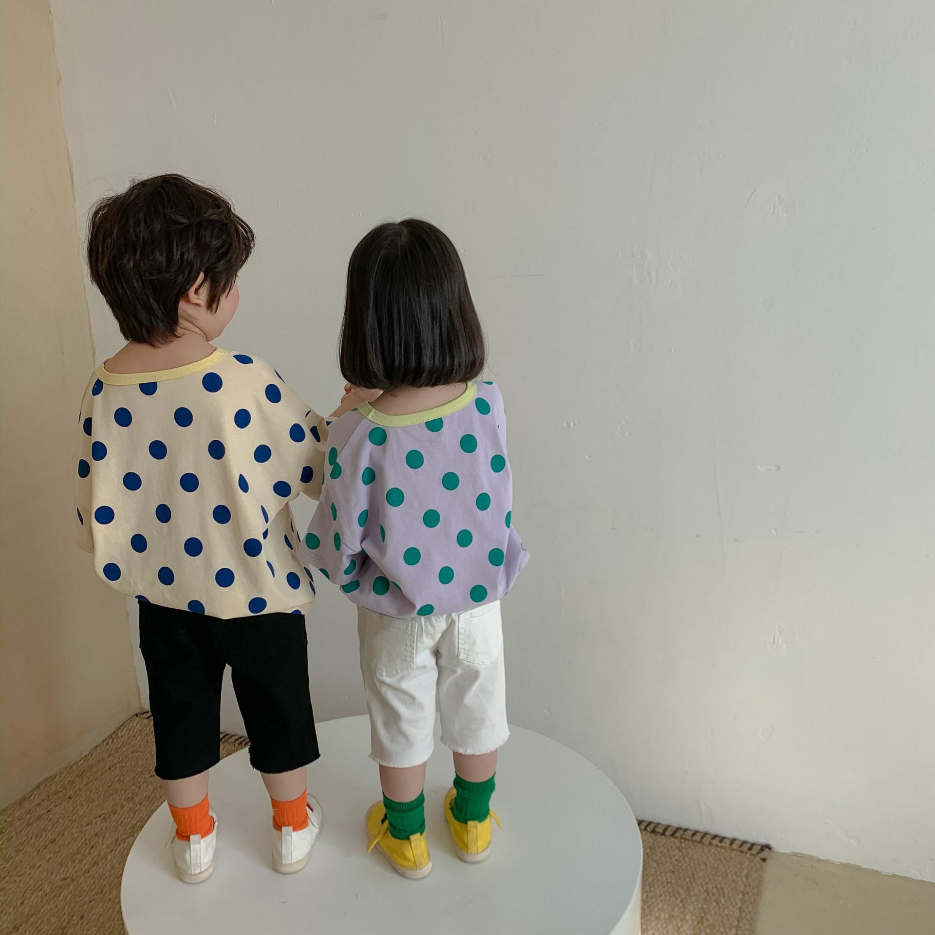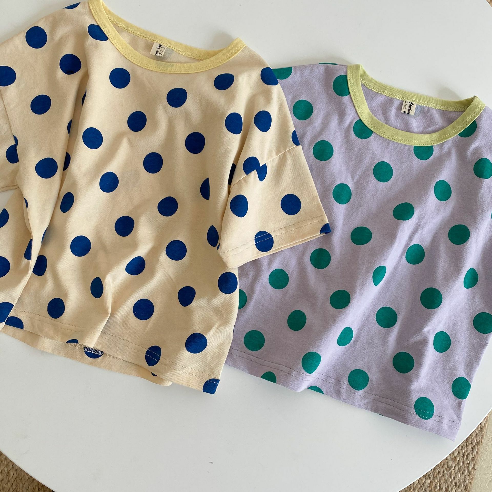 撞色領寬鬆點點上衣 2色