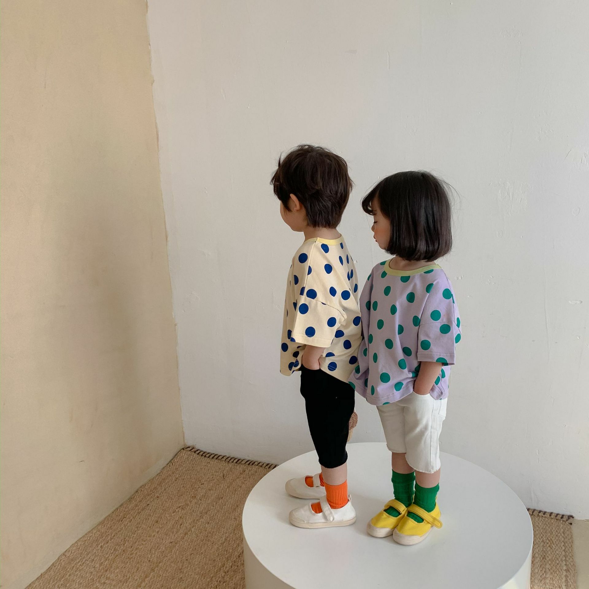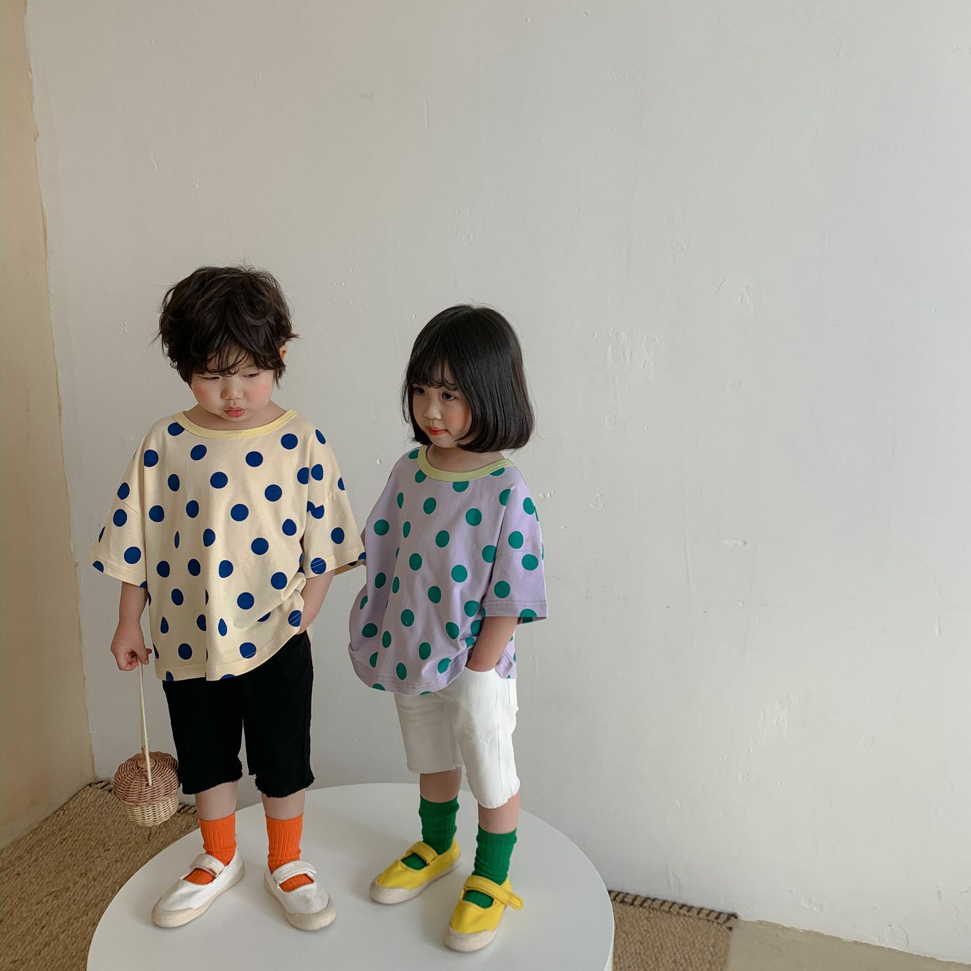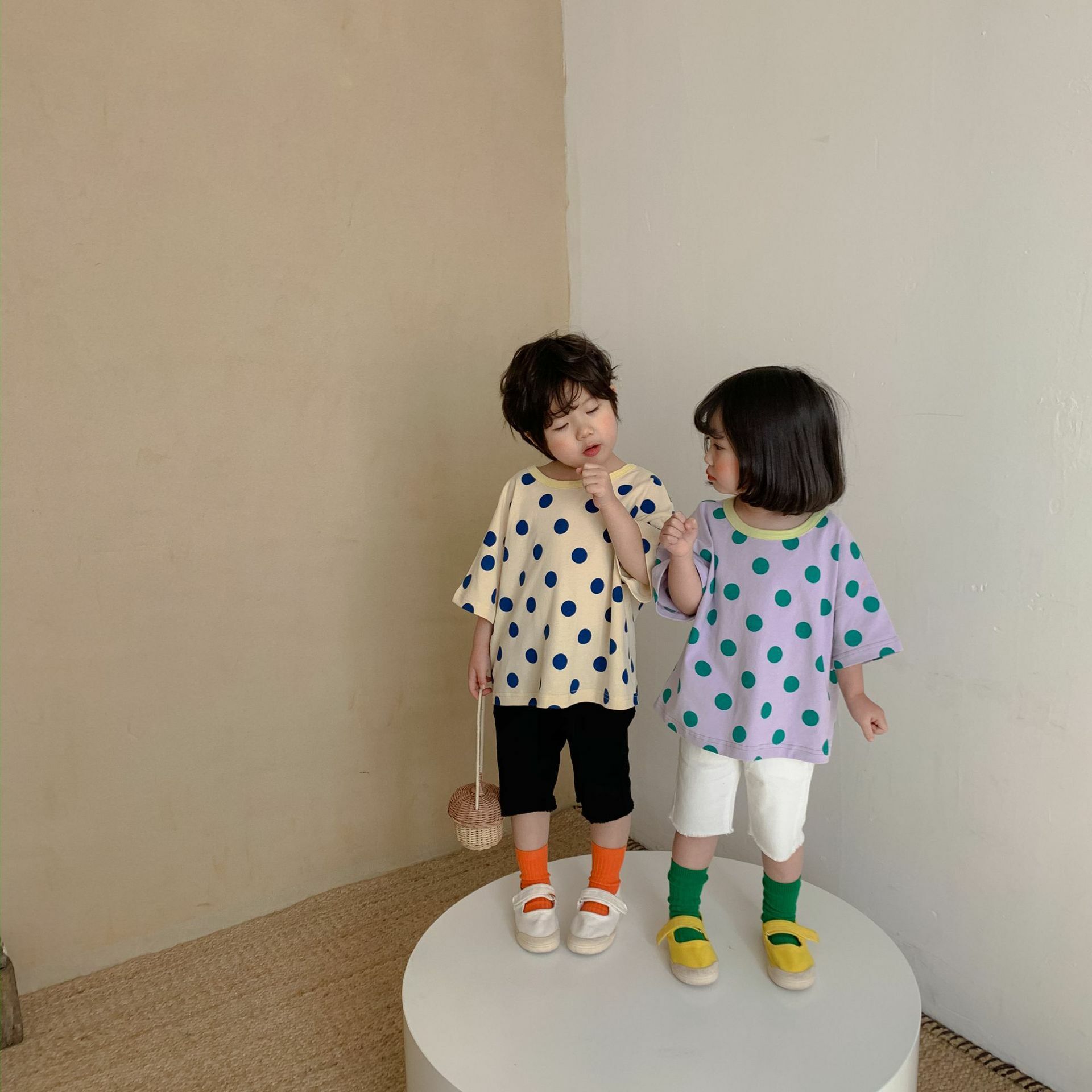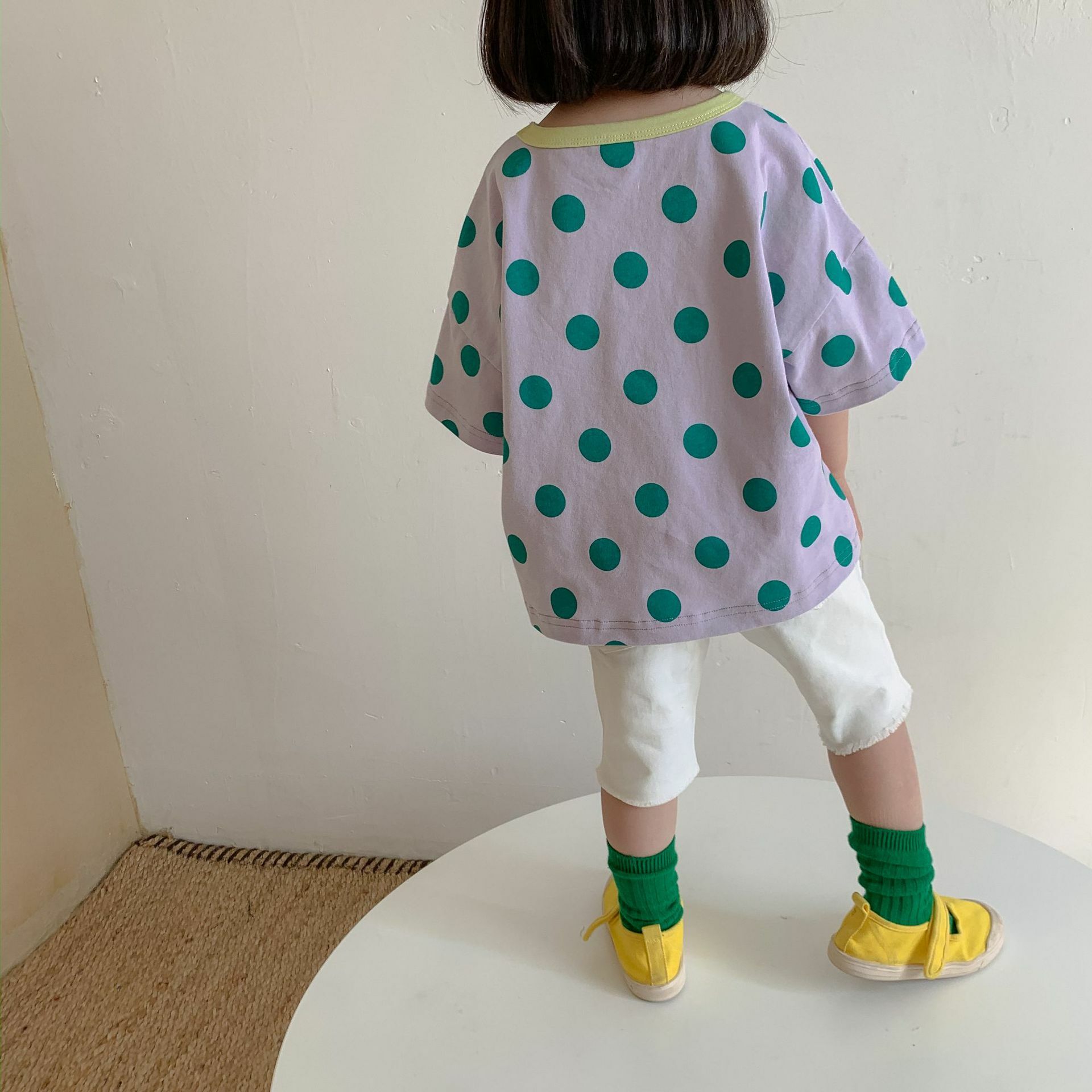 撞色領寬鬆點點上衣 2色