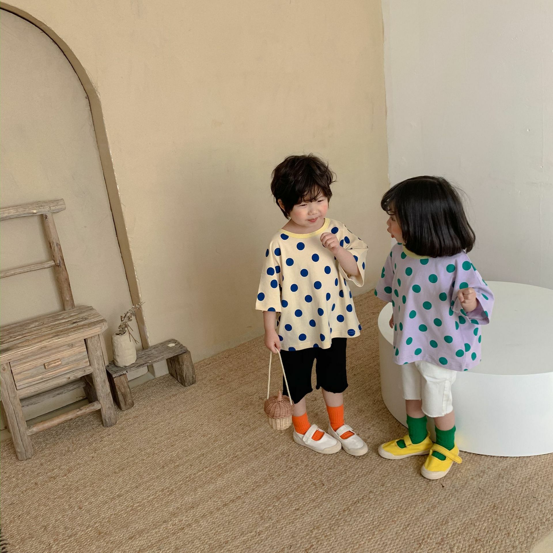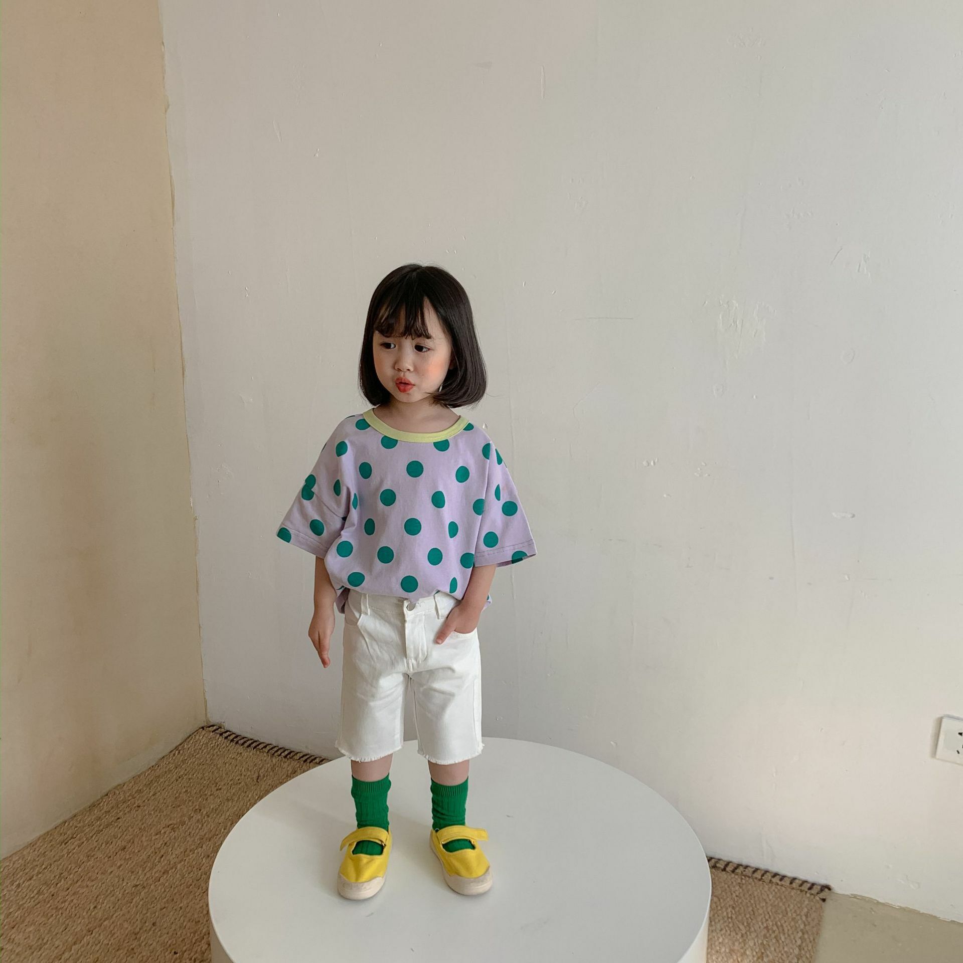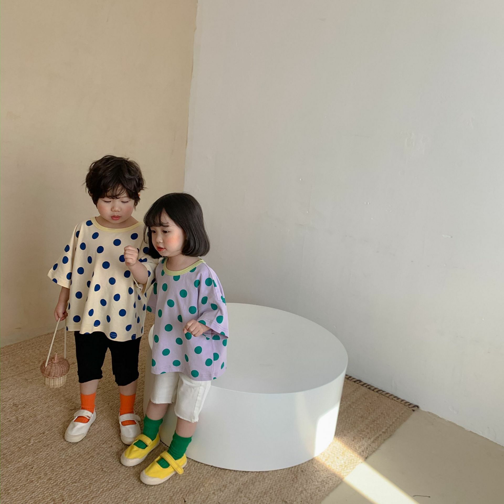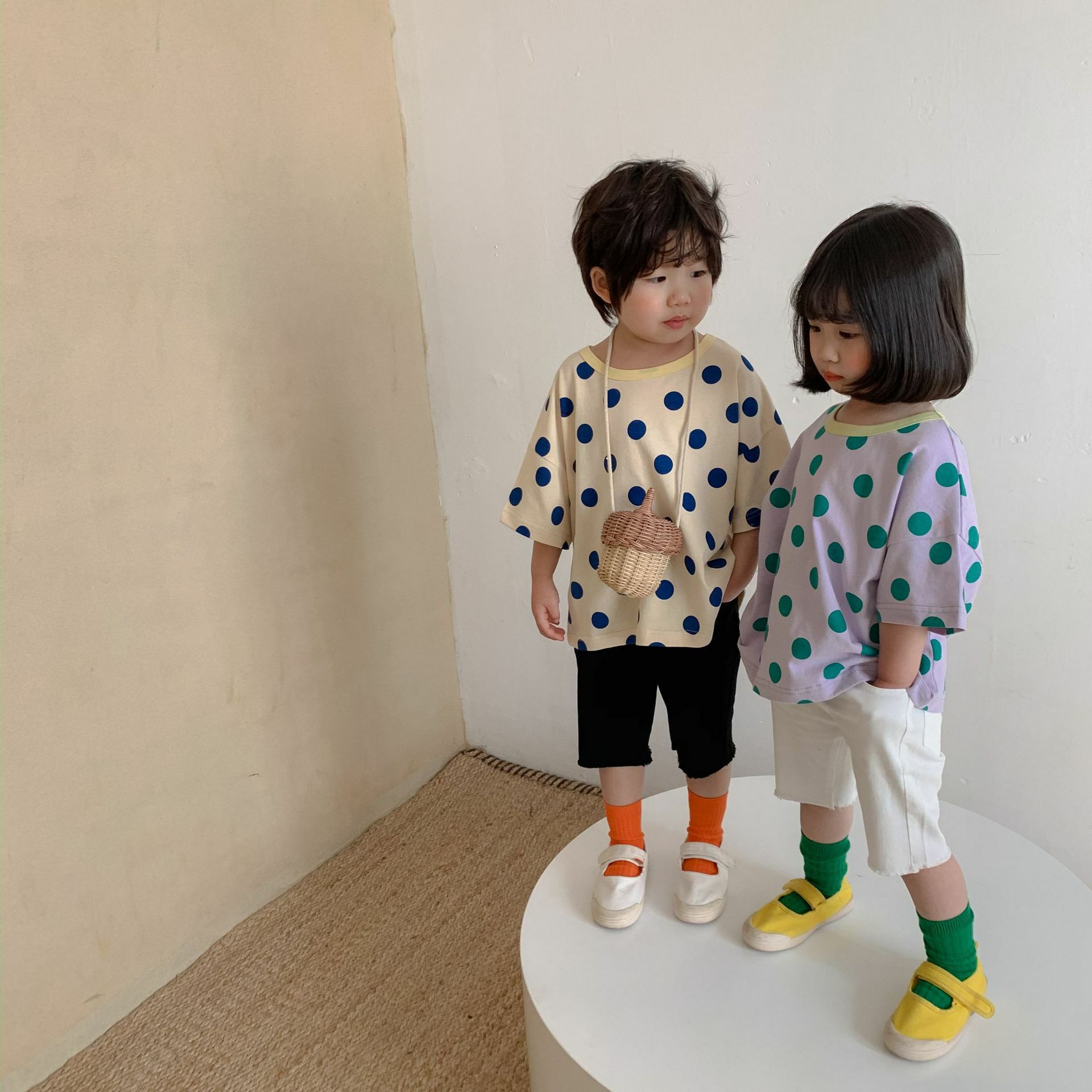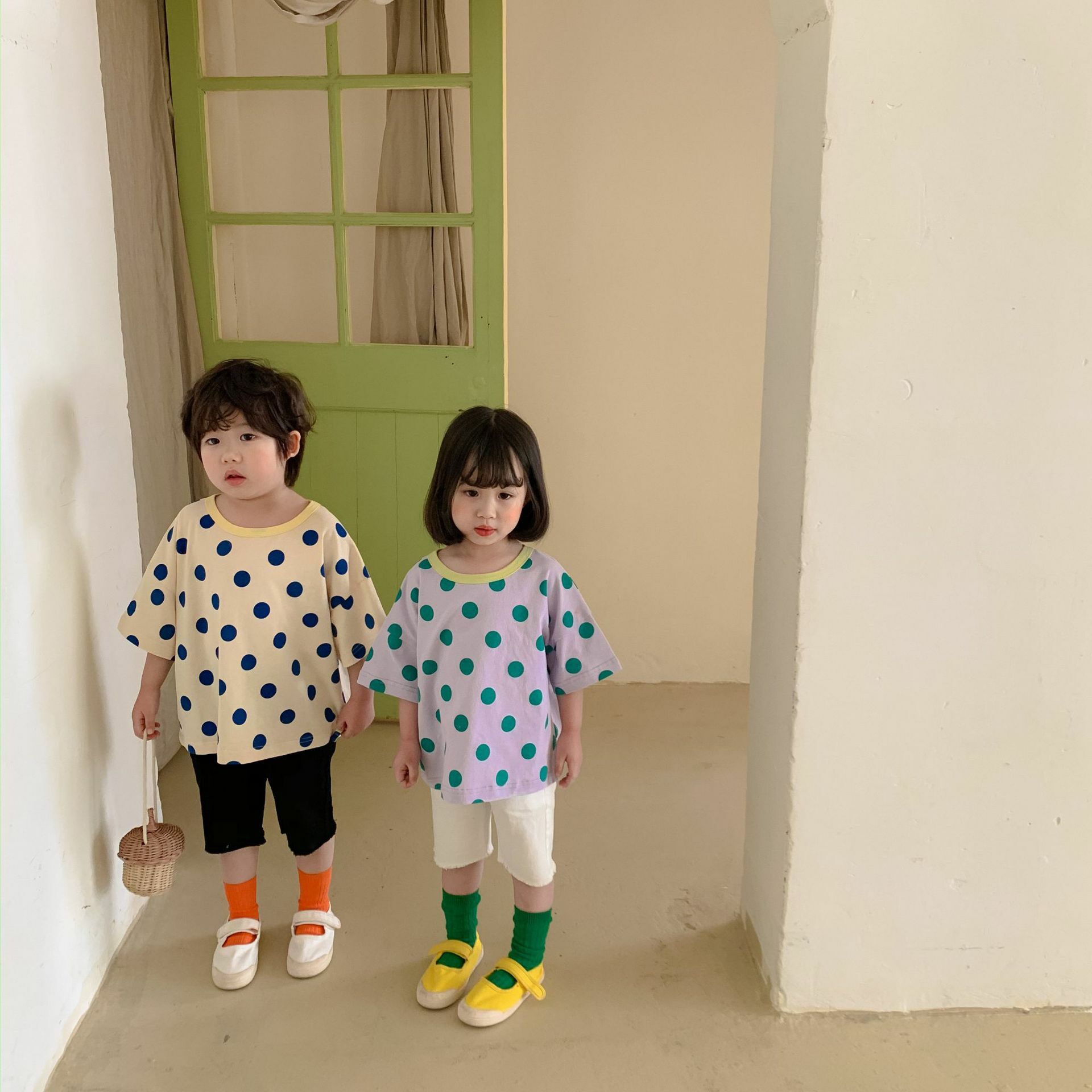 撞色領寬鬆點點上衣 2色