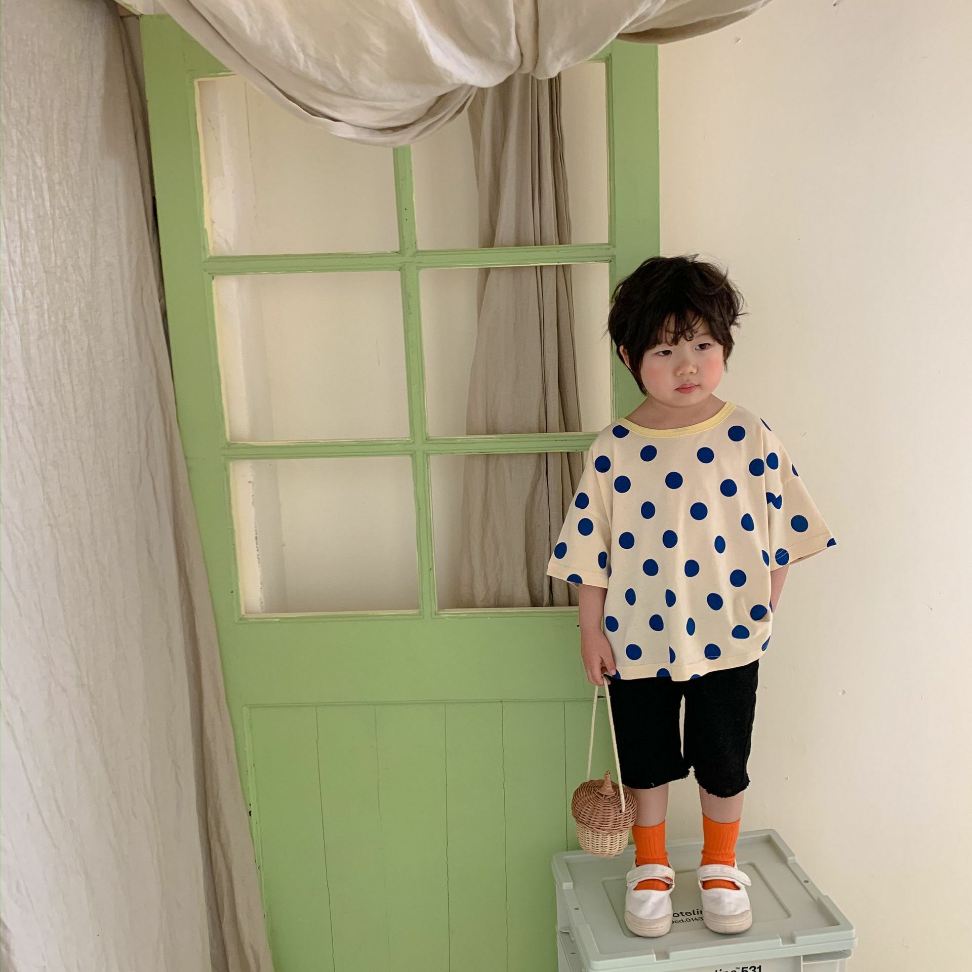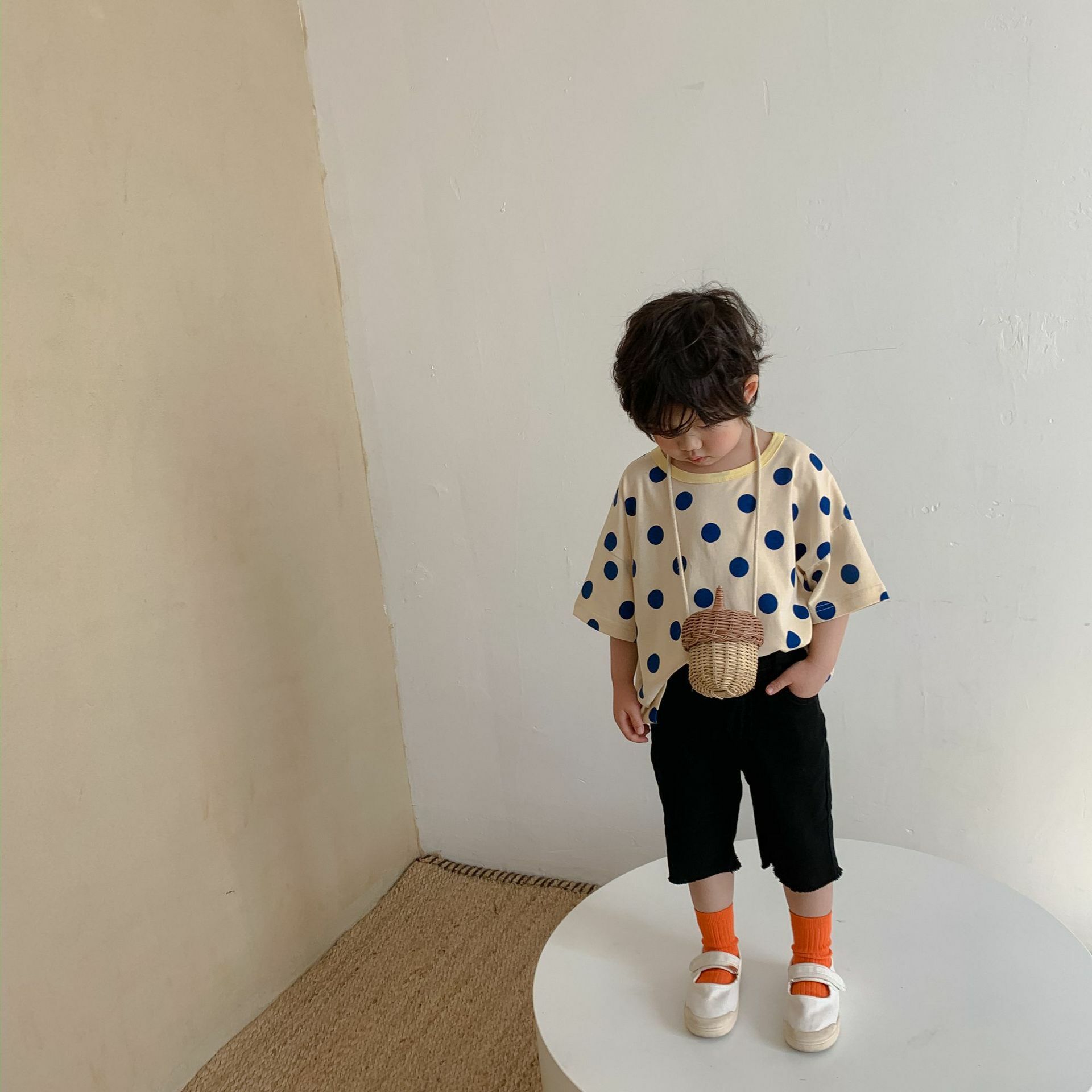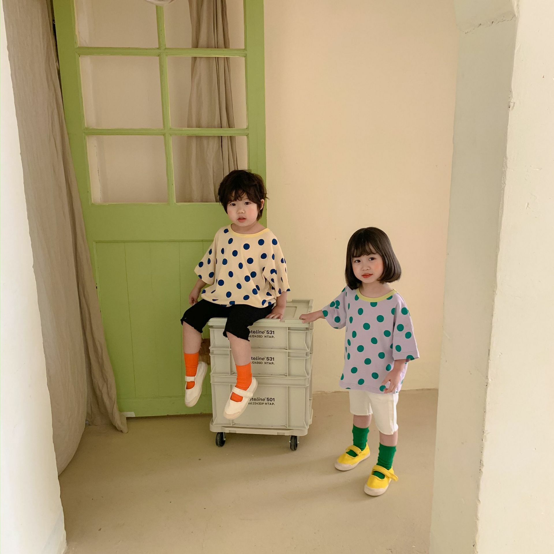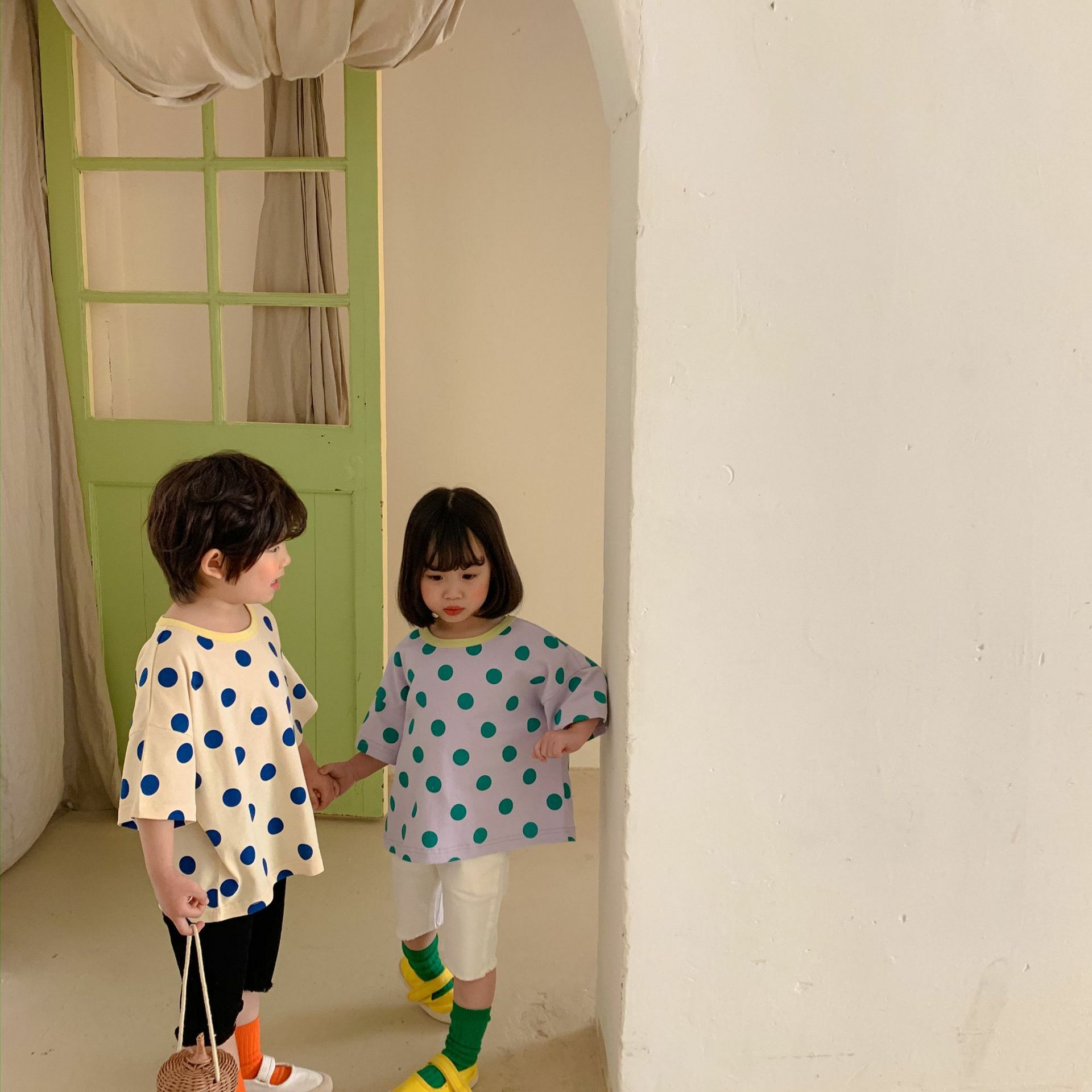 撞色領寬鬆點點上衣 2色