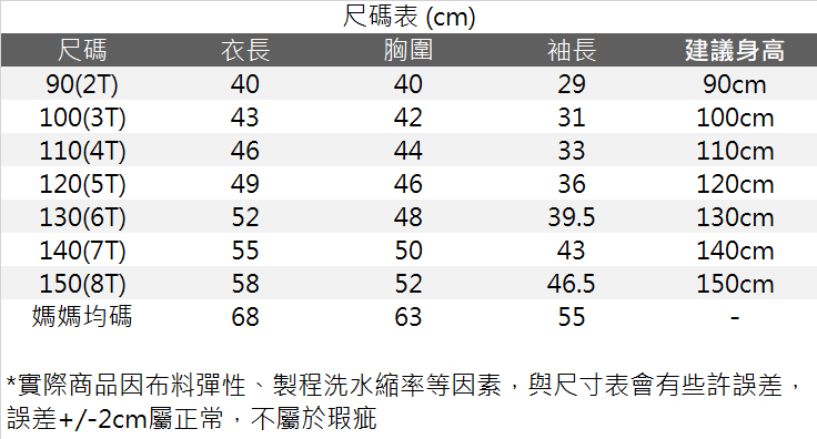 🔸尺寸 : 90/100/110/120/130/140/150cm
