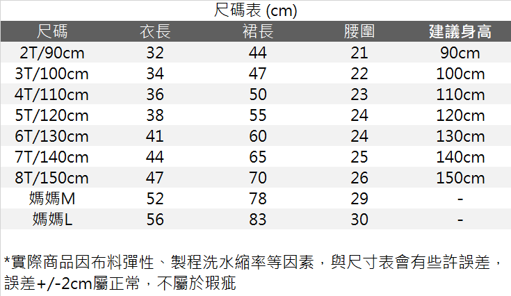 🔸尺碼 : 90/100/110/120/130/140/150 cm