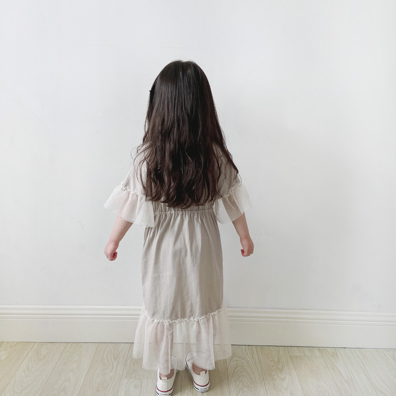現貨 100cm 親子款 拼接網紗收腰洋裝 米杏