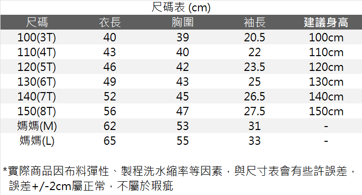 🔸尺碼 :100/110/120/130/140/150CM