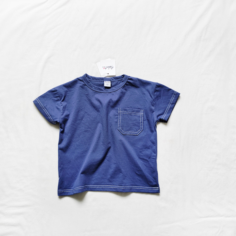 現貨 110cm 親子款 中性圓領口袋純棉上衣 2色
