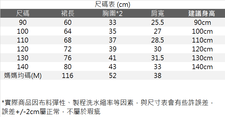 🔸尺寸 : 90/100/110/120/130/140 cm