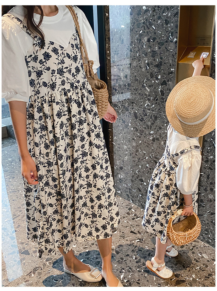 親子款 假兩件碎花洋裝