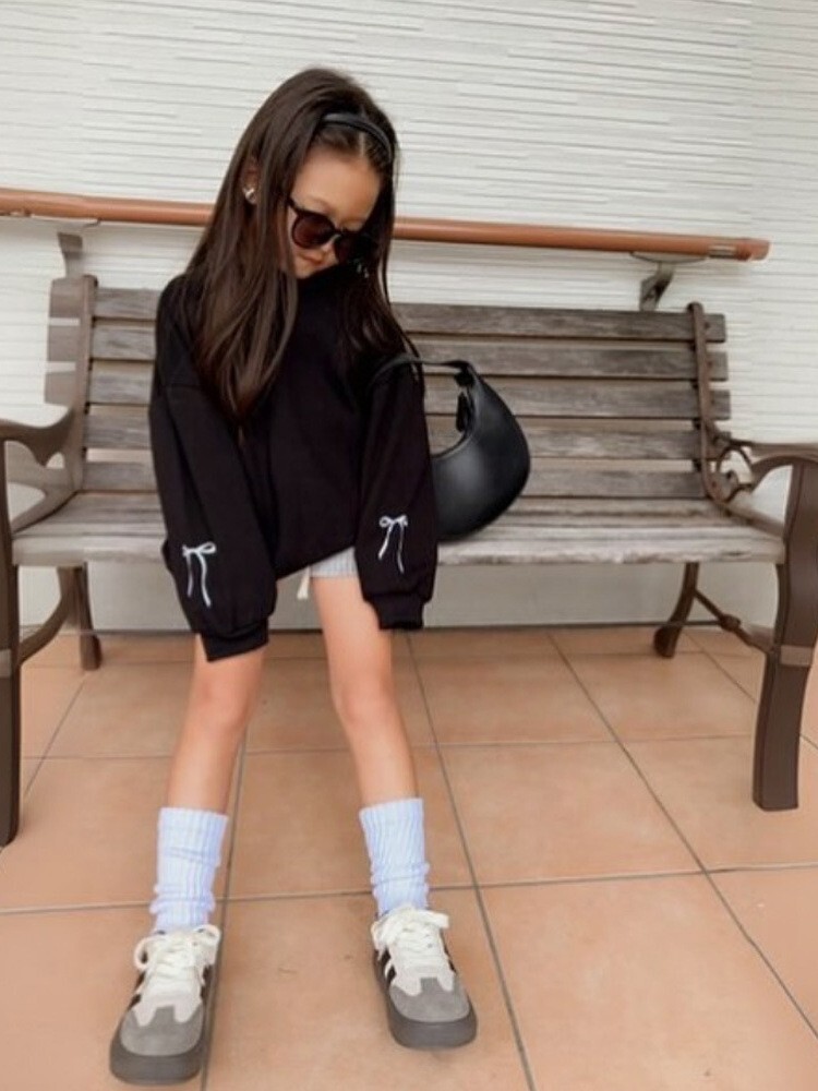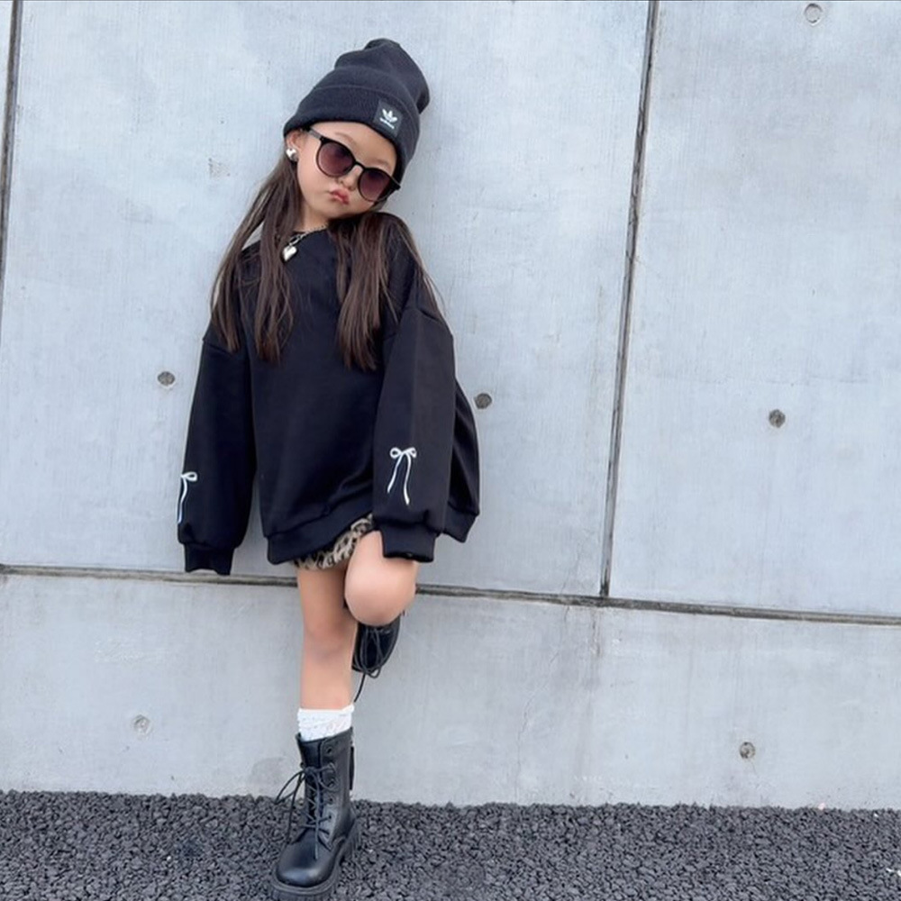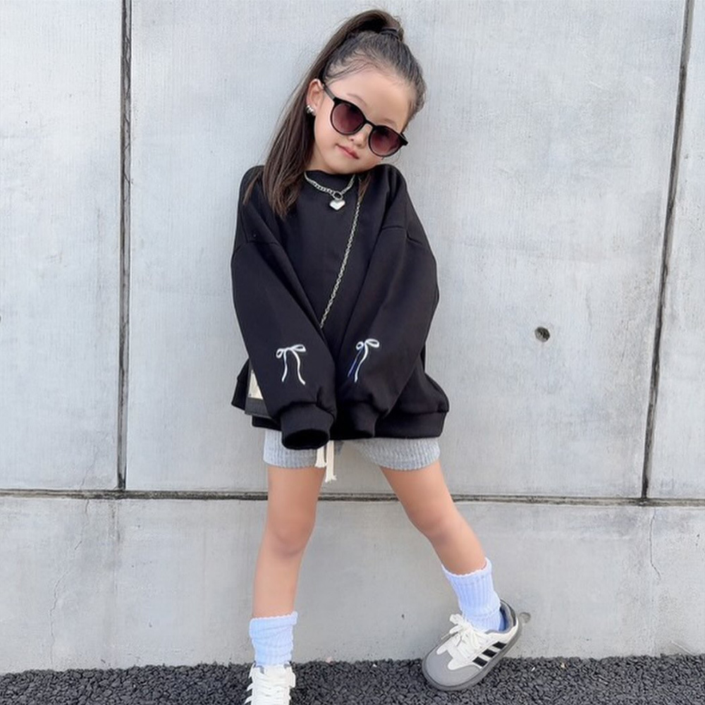 親子款 刺繡蝴蝶結黑色大學T #25320
