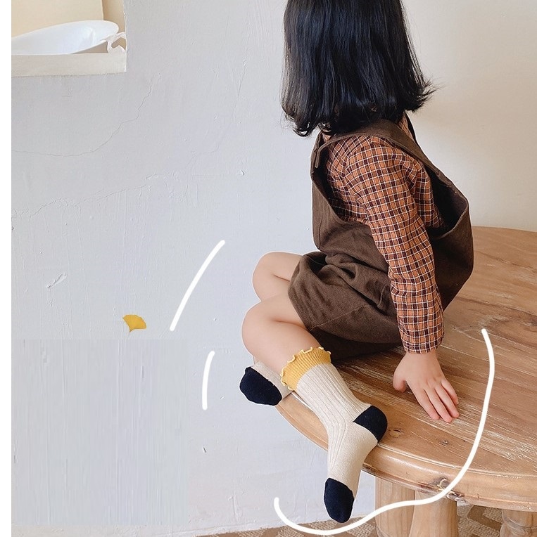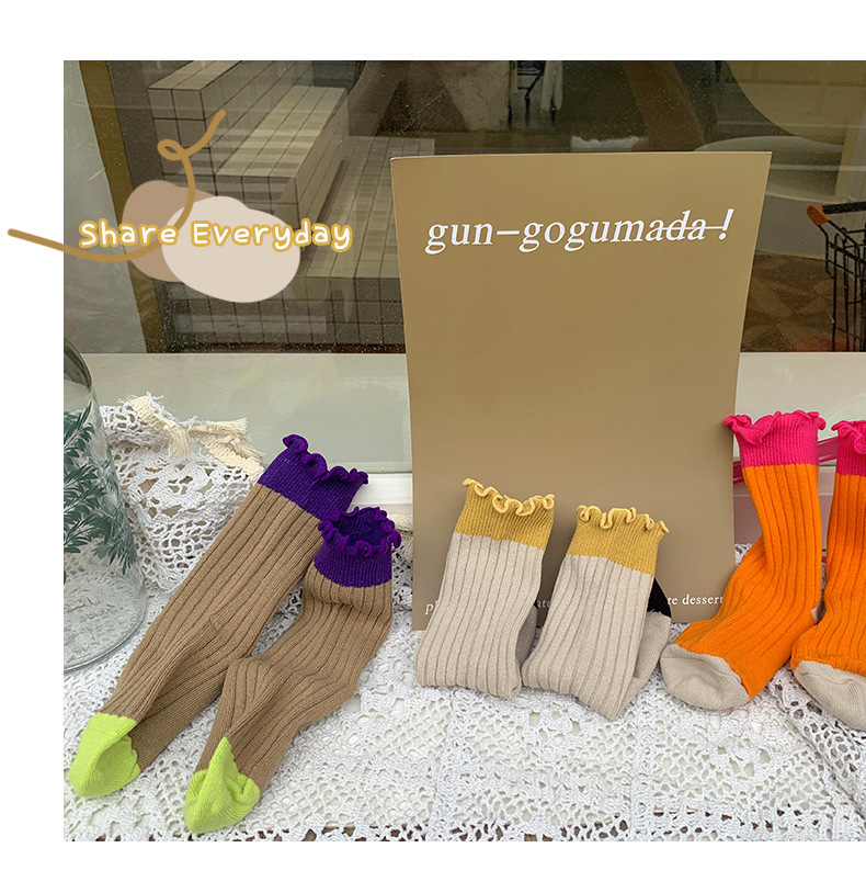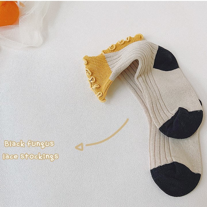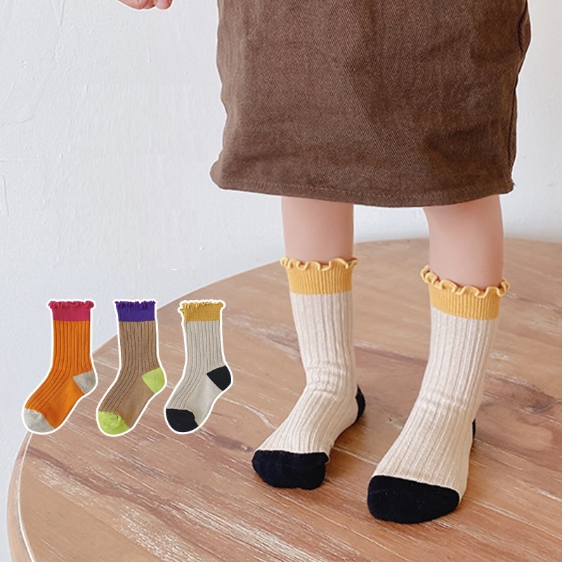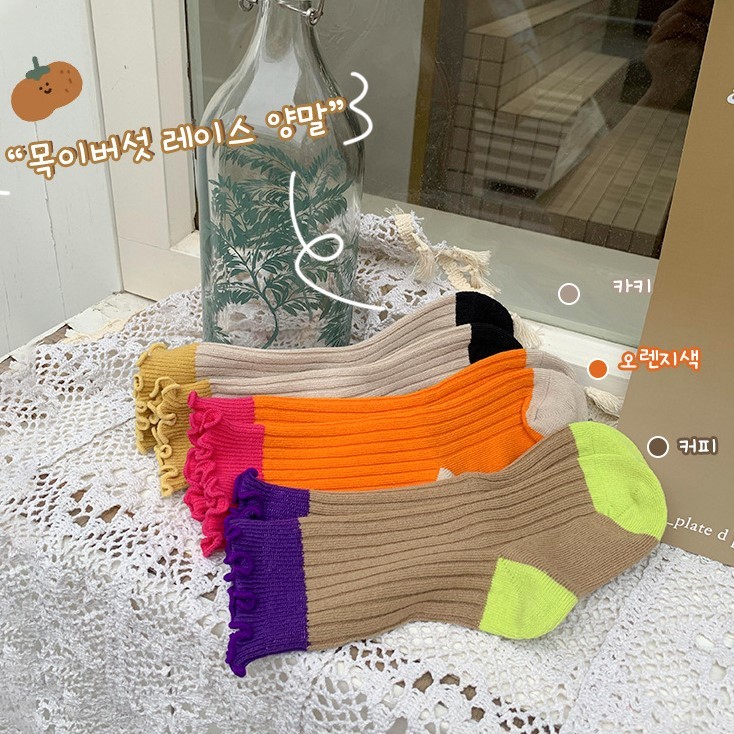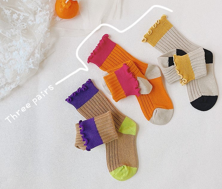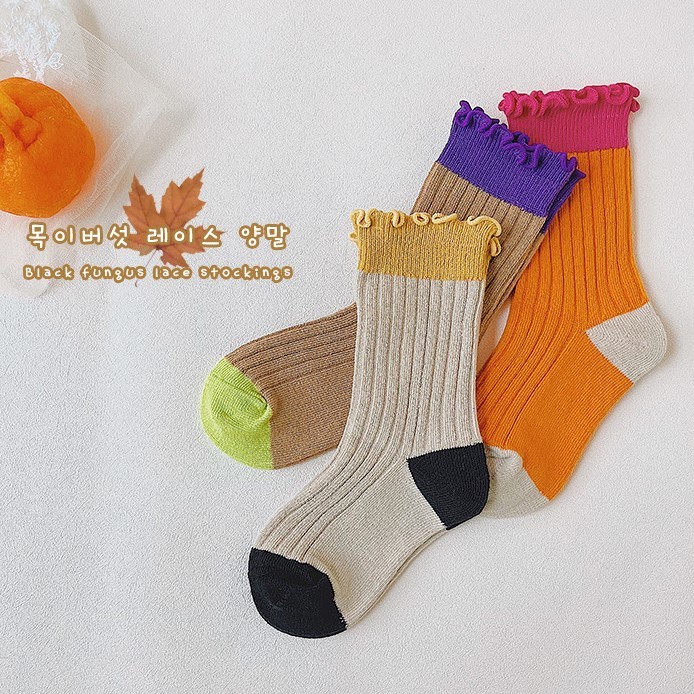 木耳邊拼色中筒襪 3入