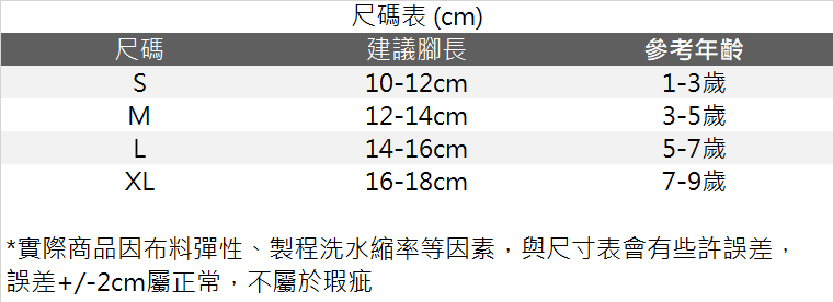 S碼 (1-3歲) 10-12cm