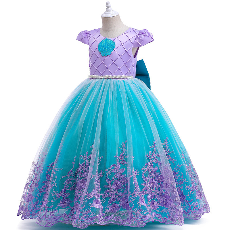 現貨 150cm 萬聖節 美人魚蕾絲裙襬公主禮服 斜格紋 100-150cm #Q50