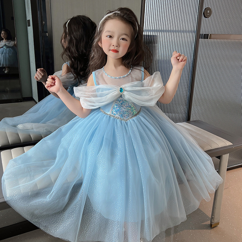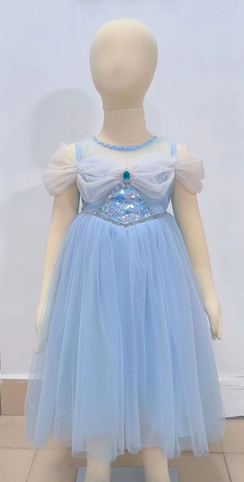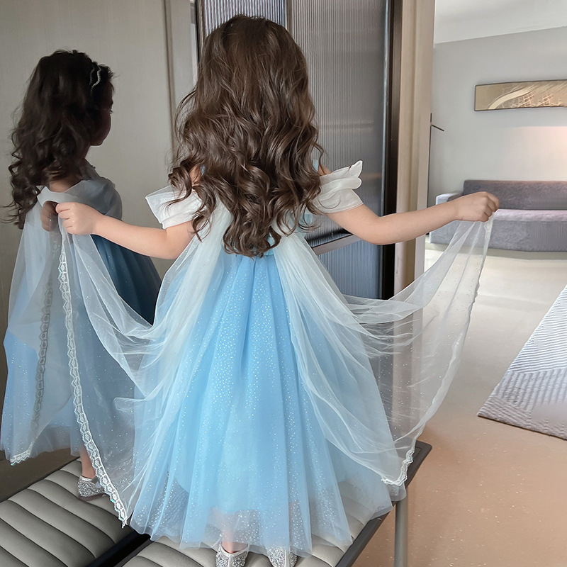 萬聖節 艾莎公主紗袖拖擺禮服 100-140cm #RA119