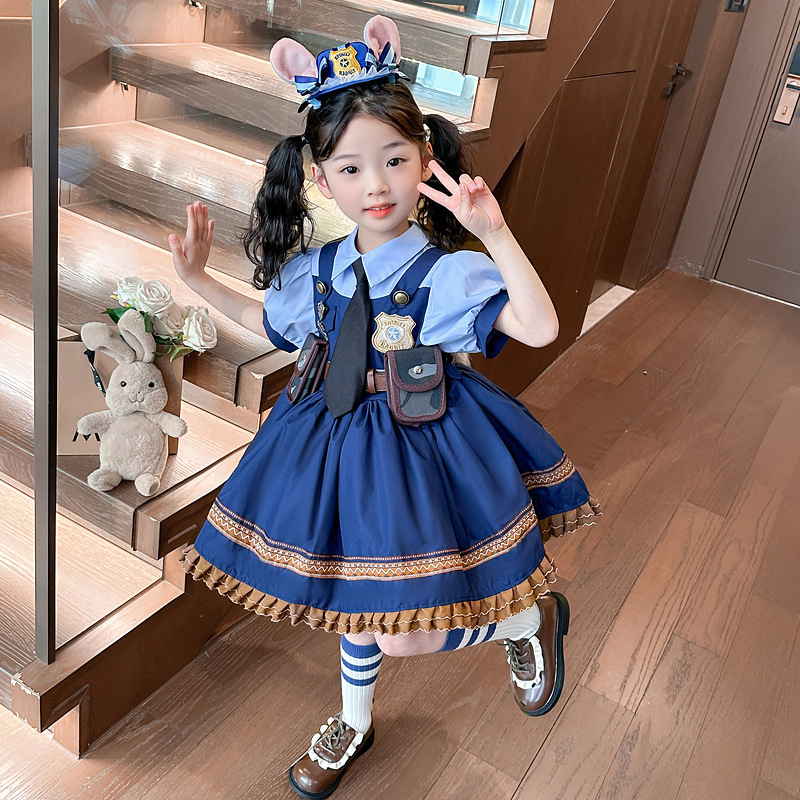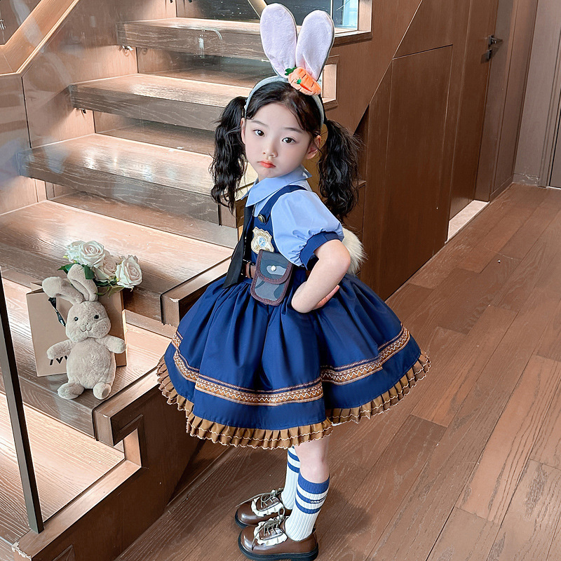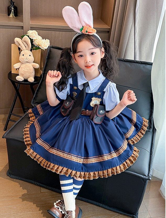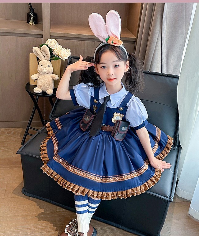 萬聖節 羅莉風兔子警官公主裙-短袖款 90-140cm #Q75
