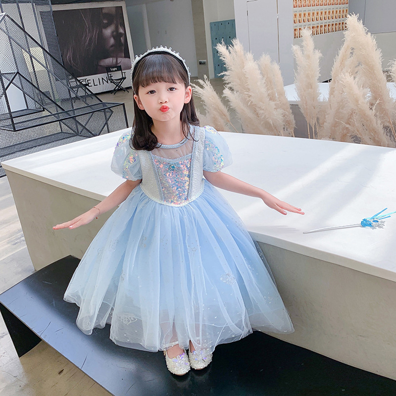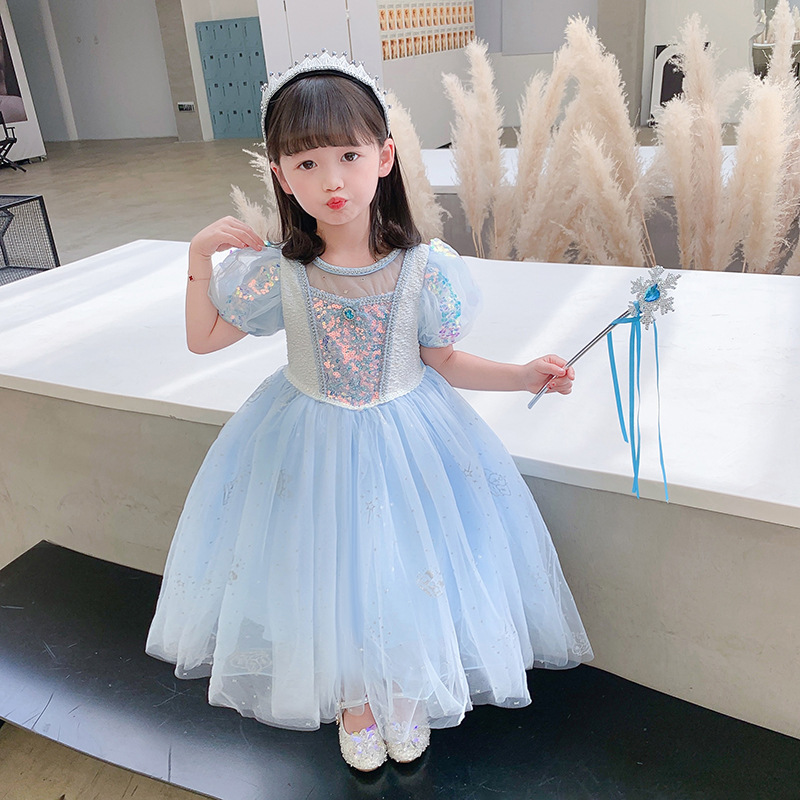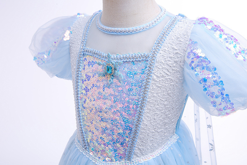 萬聖節 艾莎公主亮片洋裝 含長披肩 可拆 100-150cm #K67