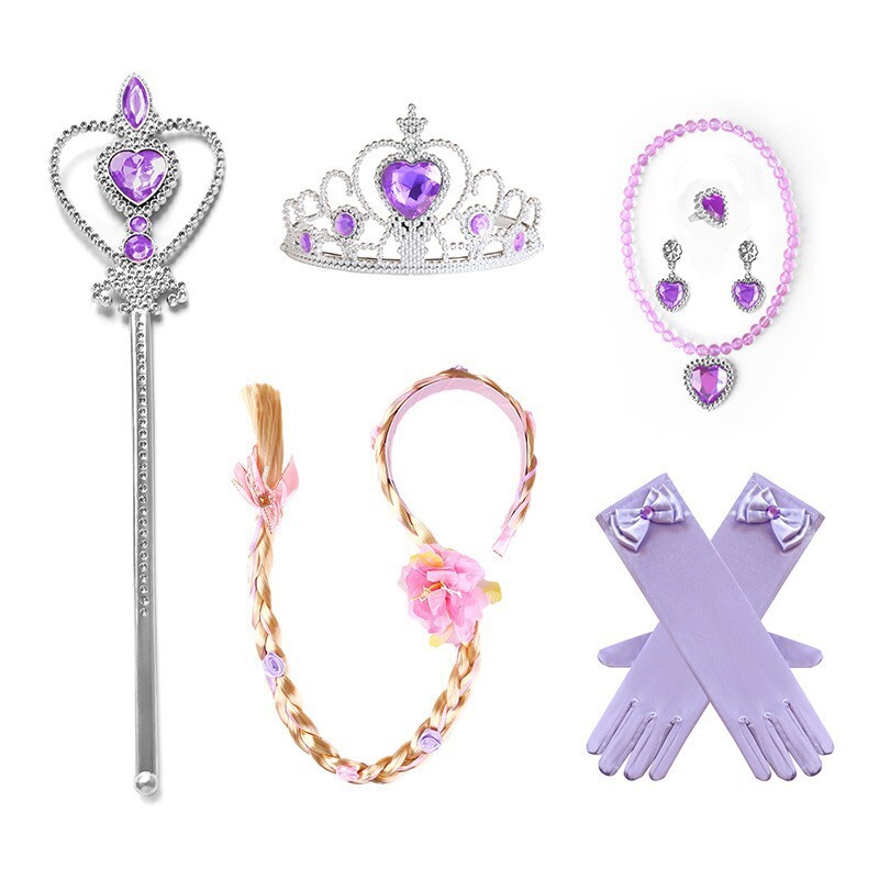 魔法棒+皇冠髮箍+手套+項鍊+耳環+戒指+辮子髮箍