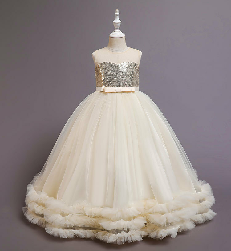亮片透膚下擺抓紗長禮服 5色 #68001